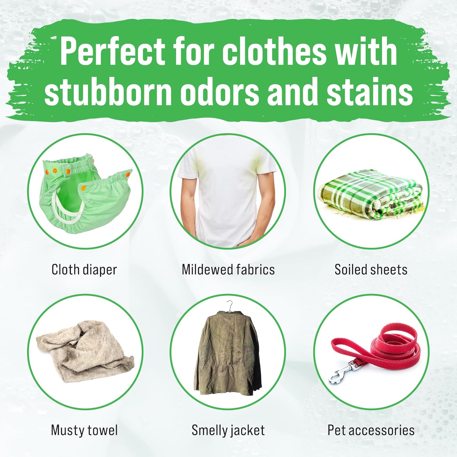 - Suitable for All Washing Machines - Our 45oz hard water stain remover doubles as a pre-soak and cleans approximately 90 loads! Just add one scoop for regular cycles or an extra scoop for deep cleaning. Works well as an active wear laundry detergent, linen detergent, and cloth diaper detergent.