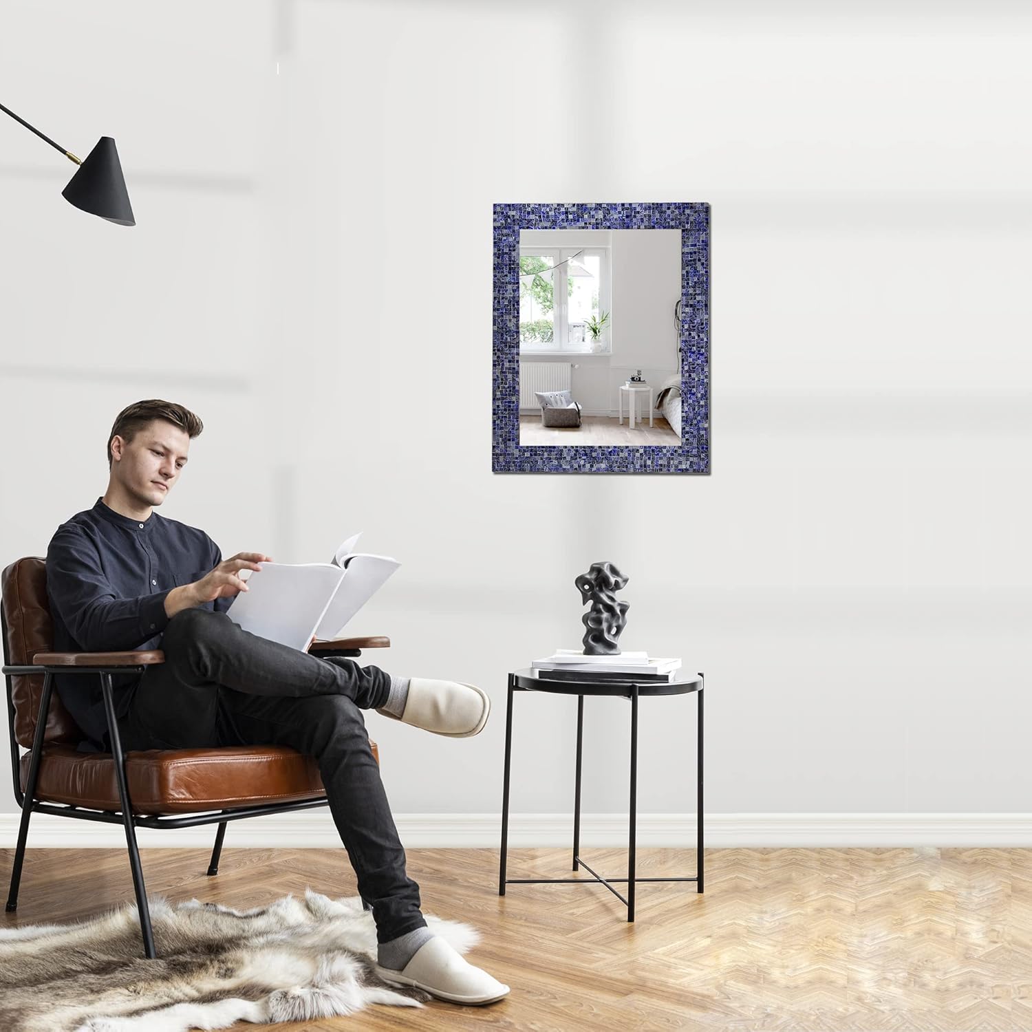 30" x 24" Glass Mosaic Framed Decorative Wall Mirror, Handmade Eclectic Accent Mirror, Unique Vanity Mirror (Lapis Blue)