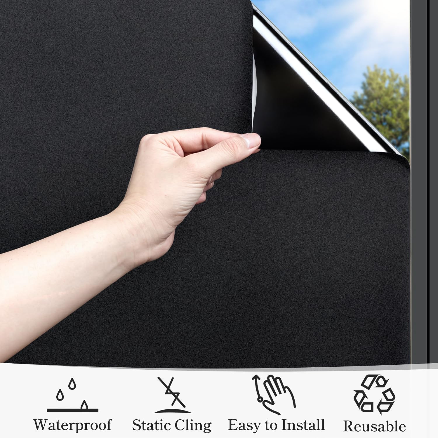 DUOFIRE Blackout Window Film Completely Light Blocking Privacy Window Film Room Darkening Frosted Tint Films for Day Sleep, Non Adhesive Static Cling Films DT-C009 (23.6 x 78.7 Inch)