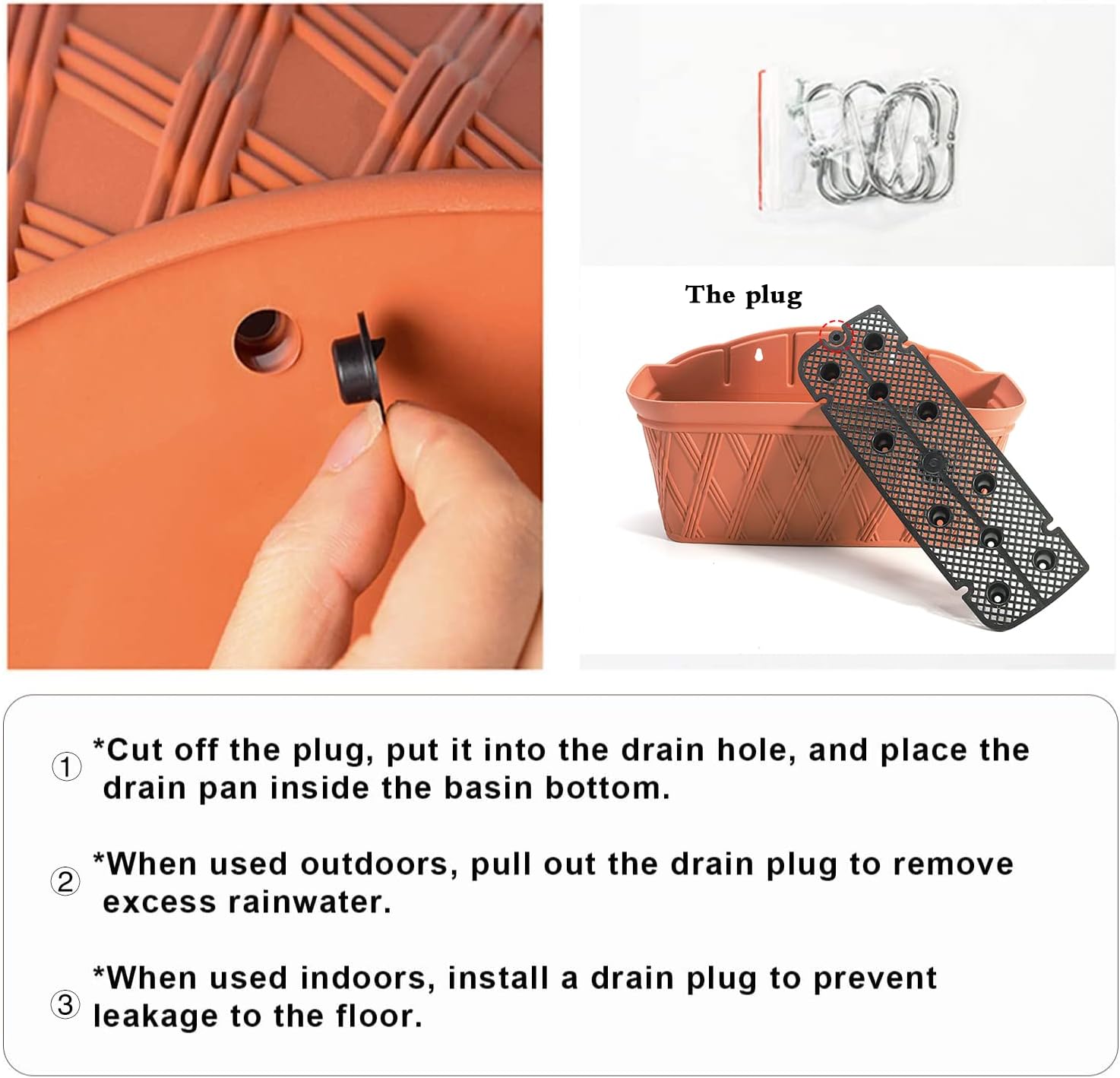 Sungmor 3 Pack Wall Hanging Planters, 16.5 Inch Railing Fence Hanging Flower Pots, Thickened Plastic Water Storage Plant Pot, Indoor Outdoor Garden Balcony Decor, Large Terracotta Color Plant Basket