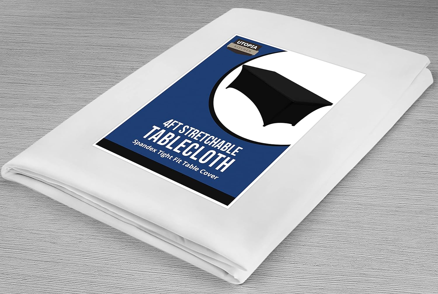 Utopia Kitchen 4FT Spandex Tablecloth [1 Pack, White] 200 GSM Stretch, Fitted, Washable and Wrinkle Resistant Table Cloth Rectangle Cover for Trade Shows, Wedding, Parties [48Lx30Wx30H Inch]