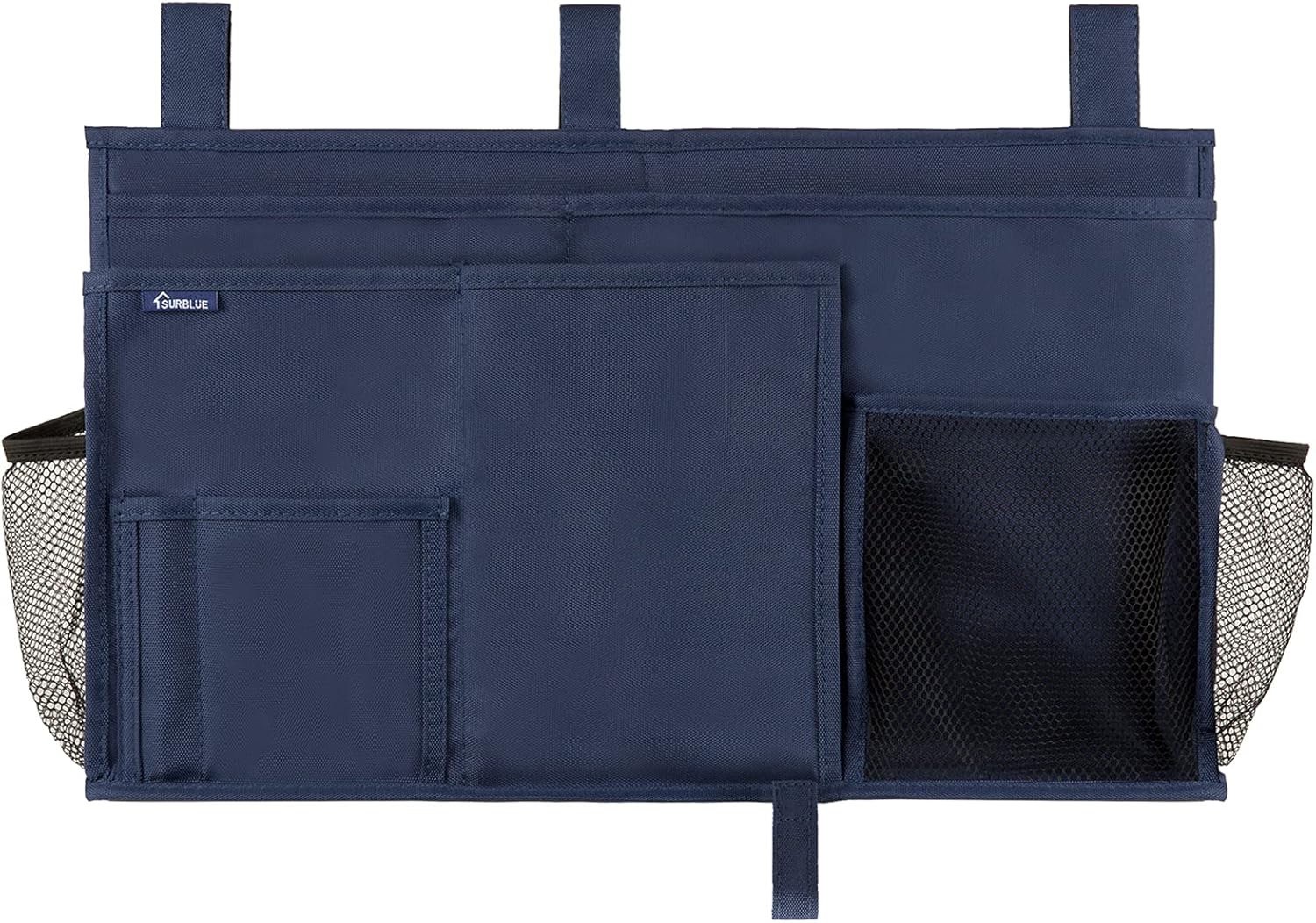 Surblue Caddy Hanging Organizer Bedside Storage Bag for Bunk and Hospital Beds, Blue, L