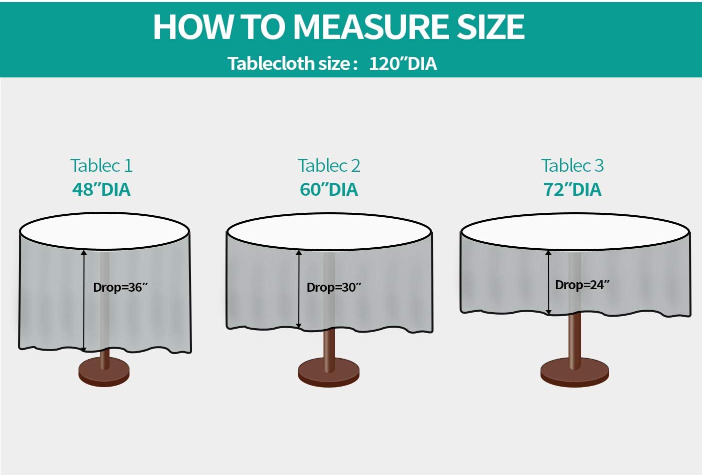 - Package includes: Surmente 120 inch round tablecloth is made of 100% polyester fabric, comfortable to touch, convenient & durable, which can protect your table and furniture from scratches and sunlight