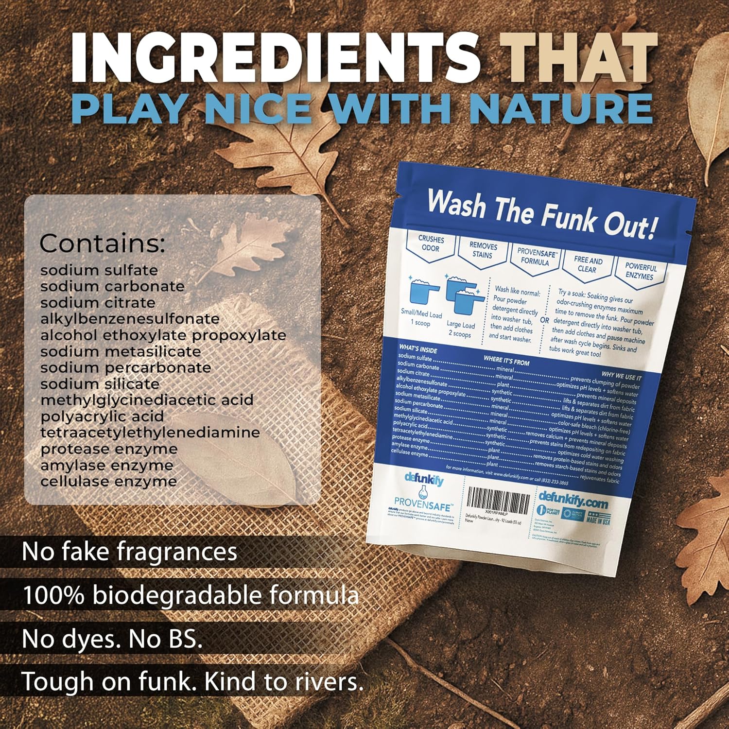 - ๐ฃ๐ผ๐๐ฒ๐ฟ๐ณ๐๐น ๐๐ฎ๐๐ป๐ฑ๐ฟ๐ ๐ฆ๐ผ๐ฎ๐ฝ: Inside one small scoop of powder detergent for laundry is an industry leading stain remover, odor remover / eliminator & laundry stripper in one! While powerful, Defunkify's laundry detergent powder remains safe for sensitive skin, all fabrics & clothing types (including activewear & outdoor gear), & is environmentally friendly & eco-conscious w/ our patented ProvenSafe process & formula. ๐ฃ๐น๐ฎ๐ ๐๐ฎ๐ฟ๐ฑ, ๐๐น๐ฒ๐ฎ๐ป ๐๐ฎ๐๐ ๐/ ๐๐ฒ๐ณ๐๐ป๐ธ๐ถ๐ณ๐