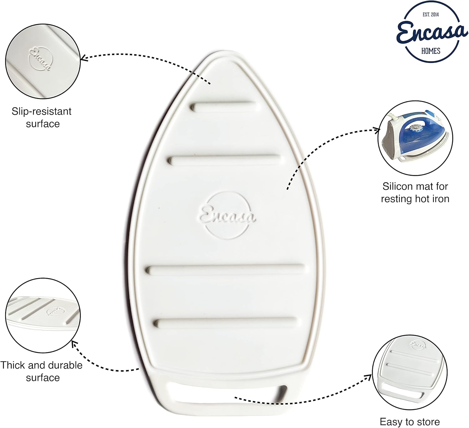 Encasa Homes Silicon Mat for Hot Iron Rest - Heat Resistant, Anti - Slip, Thicker Pad for Protecting Your Table During Ironing, Non-Burning, Machine Washable, Durable - White