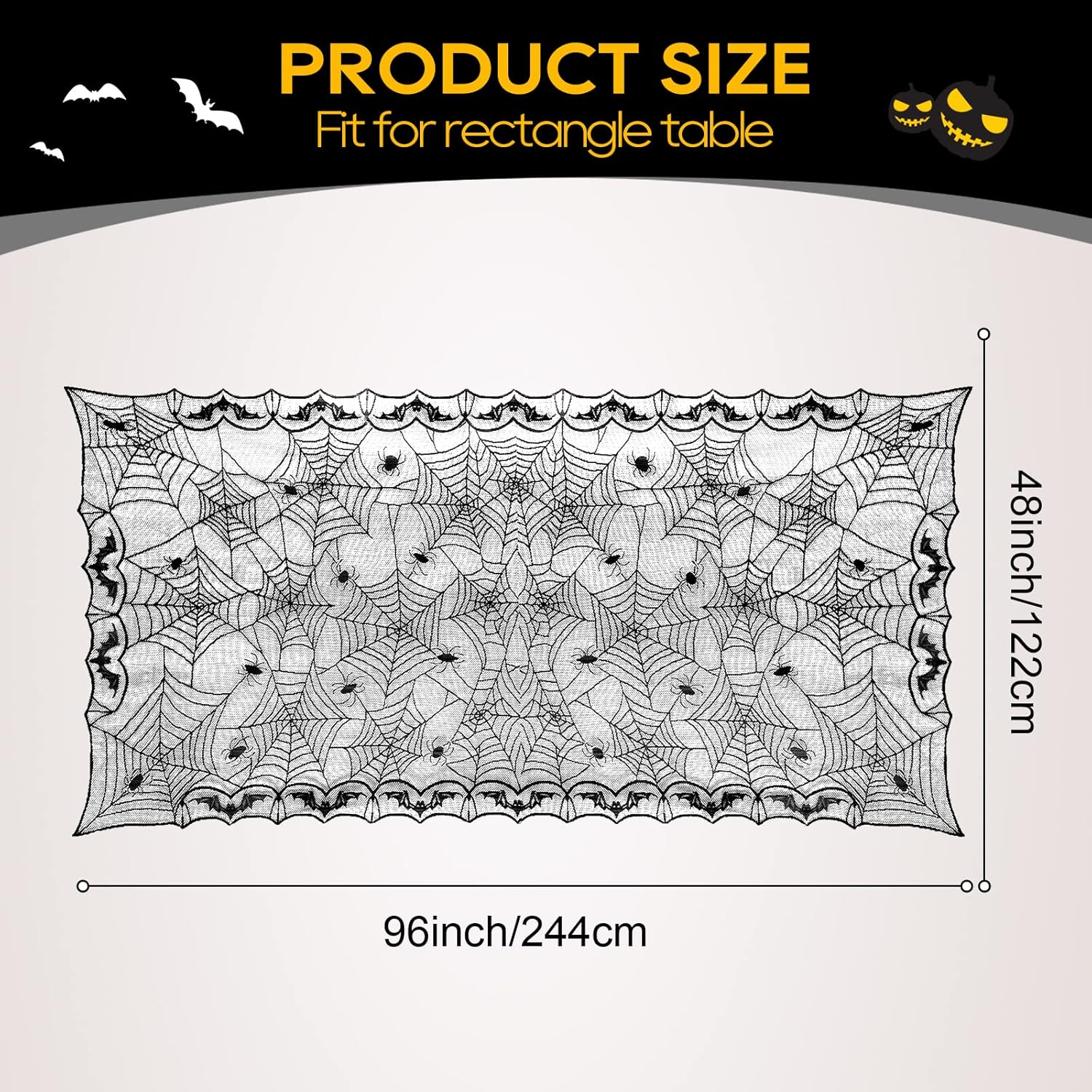 - PERFECT SIZE: Our spiderweb tablecloth measures 48 x 96 inch / 122x244cm (Length x Width), will fit table in all most size to dress up your Halloween party. Color: Black. Liner not included.