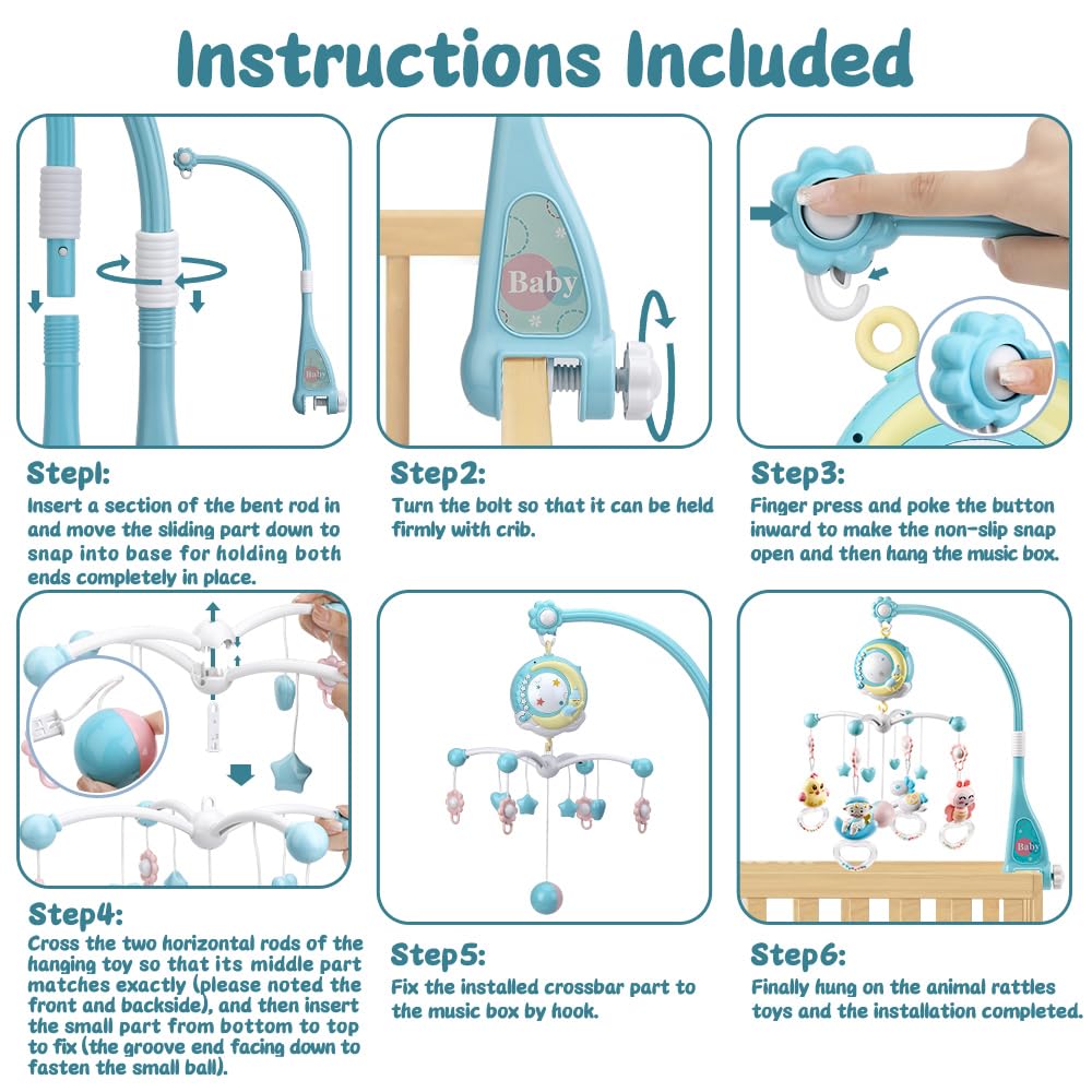 - Projection and Night Light - Mobile for crib has star lights and image 2 kinds of projection 4 scene modes.Night Light with sweet music or sounds playing along, help comfort your baby during quiet times or nap time,makes baby feel safe at night
