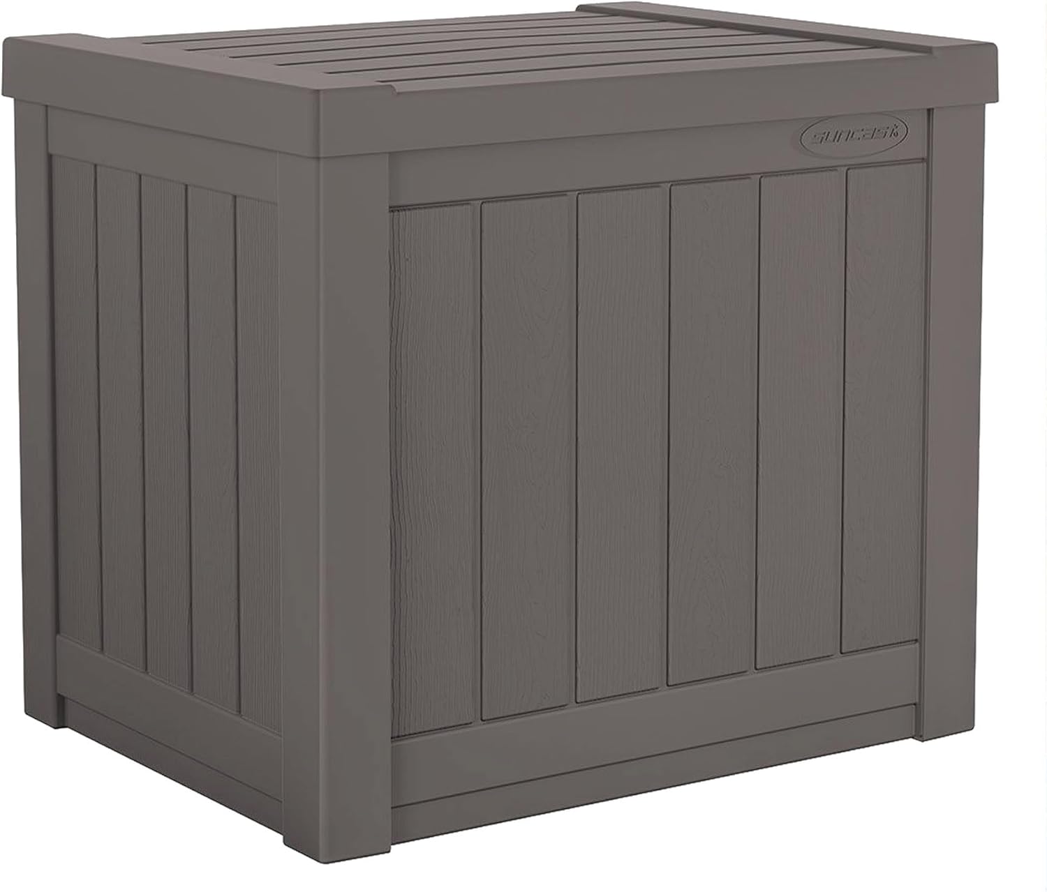 Suncast 22-Gallon Small Deck Box - Lightweight Resin Indoor/Outdoor Storage Container and Seat for Patio Cushions and Gardening Tools - Store Items on Patio, Garage, Yard - Stone Gray, Made in the USA