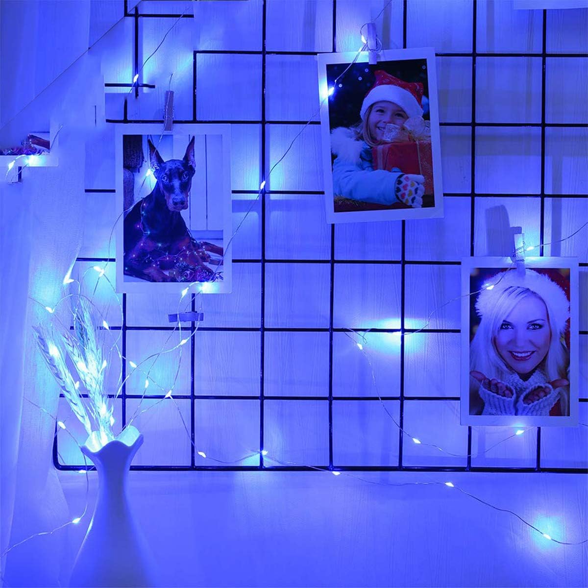 Led Fairy Lights Battery Operated, 2 Packs Mini Battery Powered Copper Wire Starry Fairy Lights for Bedroom, Christmas, Parties, Wedding, Centerpiece, Decoration (5m/16ft Blue)