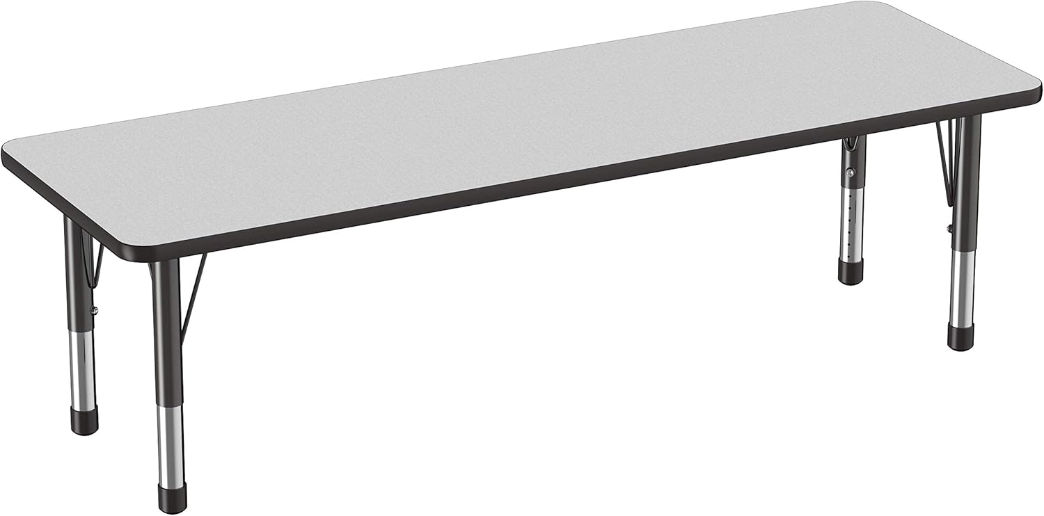 FDP Rectangle Activity School and Classroom Kids Table (24 x 72 inch), Chunky Toddler Legs, Adjustable Table Height 15-24 inches - Gray Top and Black Edge