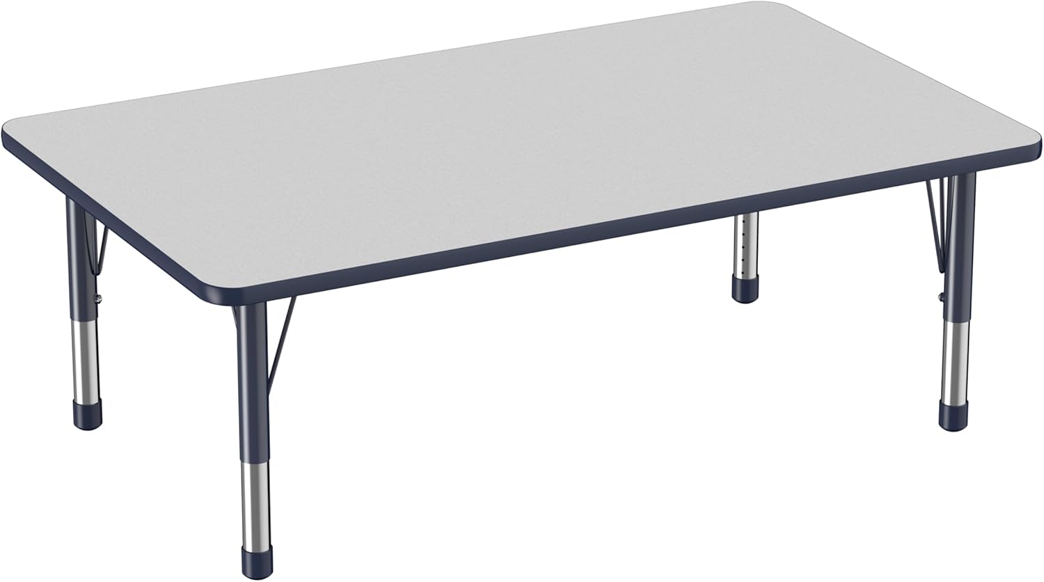 FDP Rectangle Activity School and Classroom Kids Table (36 x 60 inch), Toddler Leg, Adjustable Height 15-24 inches - Gray Top and Navy Edge