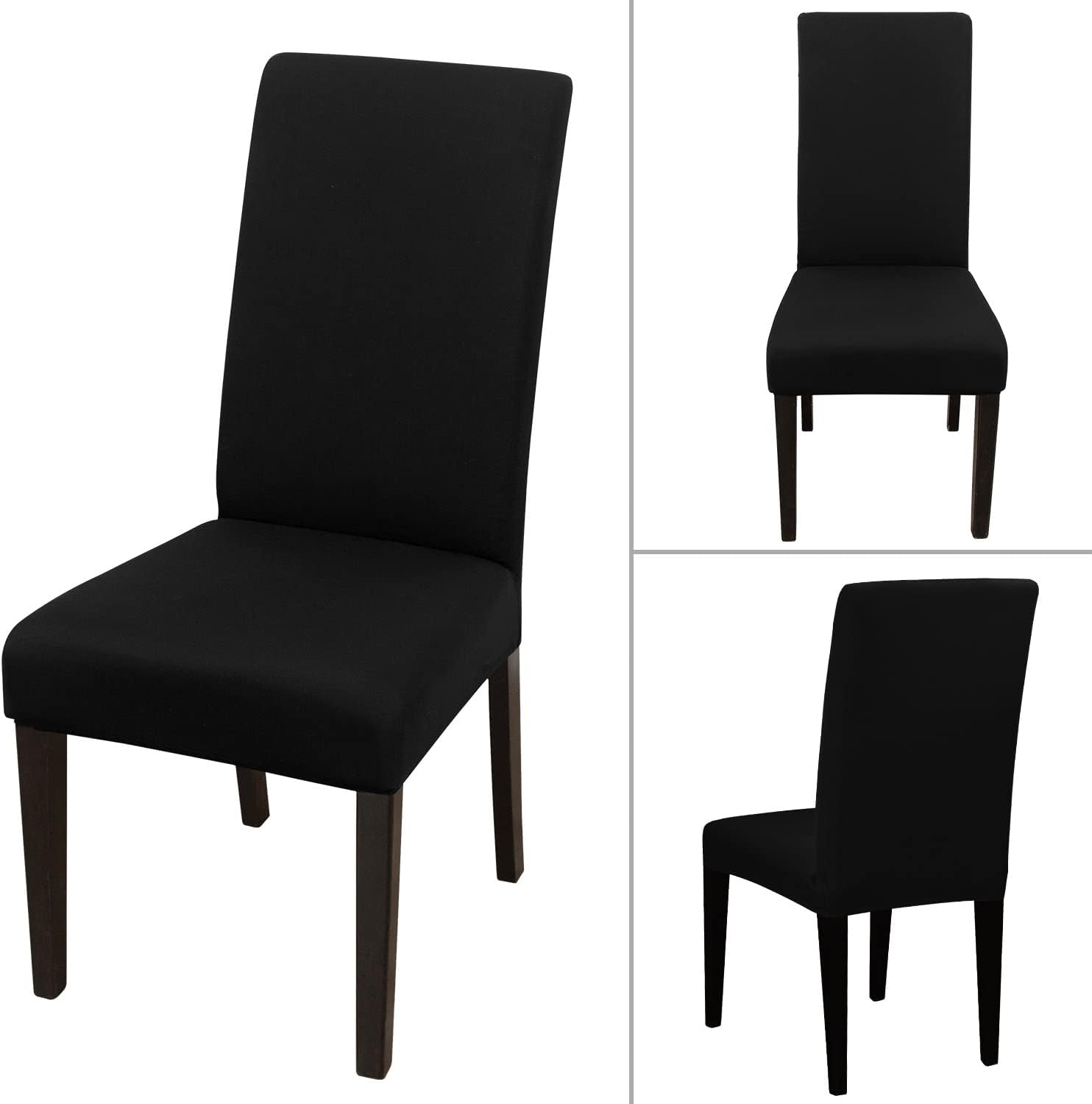 JQinHome 6 Pcs Dining Chair Slipcover,High Stretch Removable Washable Chair Seat Protector Cover for Home Party Hotel Wedding Ceremony (Black)