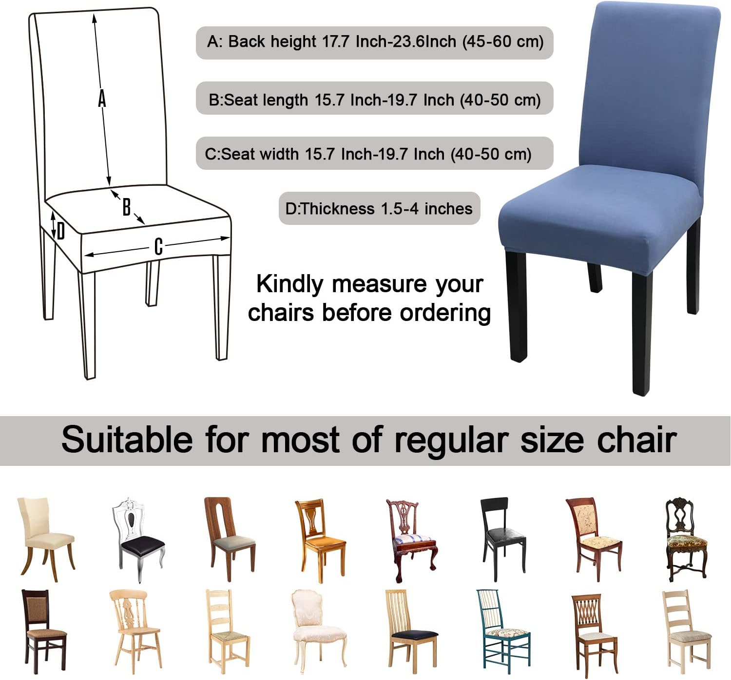 - 【Suitable for Chair Size】- Chair back height 17.7 Inch-23.6Inch (45-60 cm), Chair seat length and width 15.7 Inch-19.7 Inch (40-50 cm). Please check the measurement guide in the item picture before order.