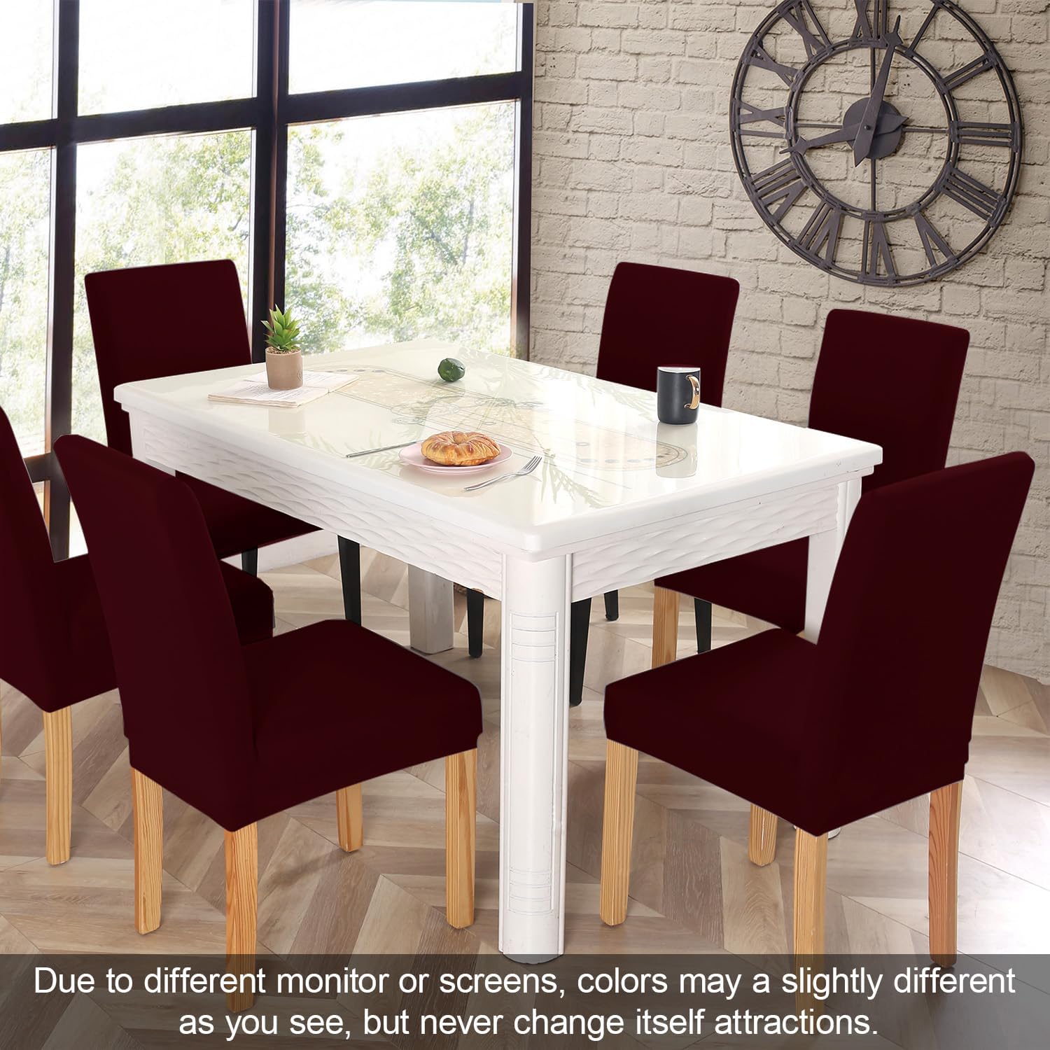 JQinHome 6 Pcs Dining Chair Slipcover,High Stretch Removable Washable Chair Seat Protector Cover for Home Party Hotel Wedding Ceremony (Burgundy)