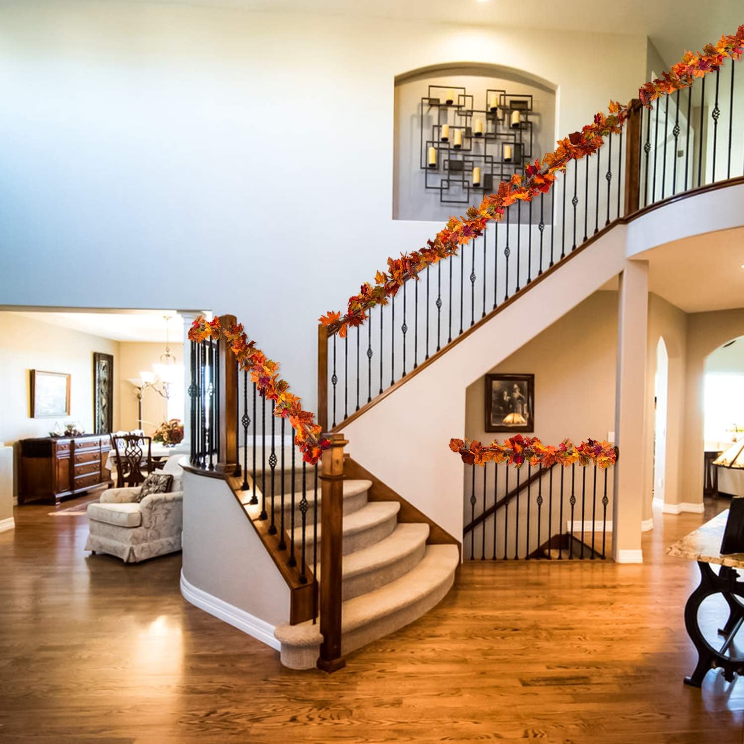 - 【Realistic Fall Leaves Garland】-- The color of the maple leaves range from light green to dark red, very colorful, look like the real fallen leaves, making for a great blend of colors to warm up any room. Perfect festival decorations for indoor or outdoor.