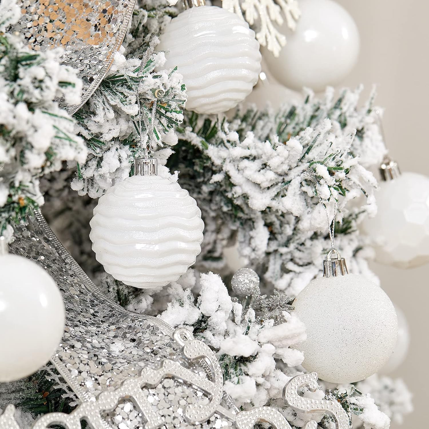 XmasExp 24ct Christmas Ball Ornaments Shatterproof Xmas Tree Hanging Balls Decorations Perfect for Halloween Decorations Holiday Wedding Christmas Decor(2.36"/60mm, White)