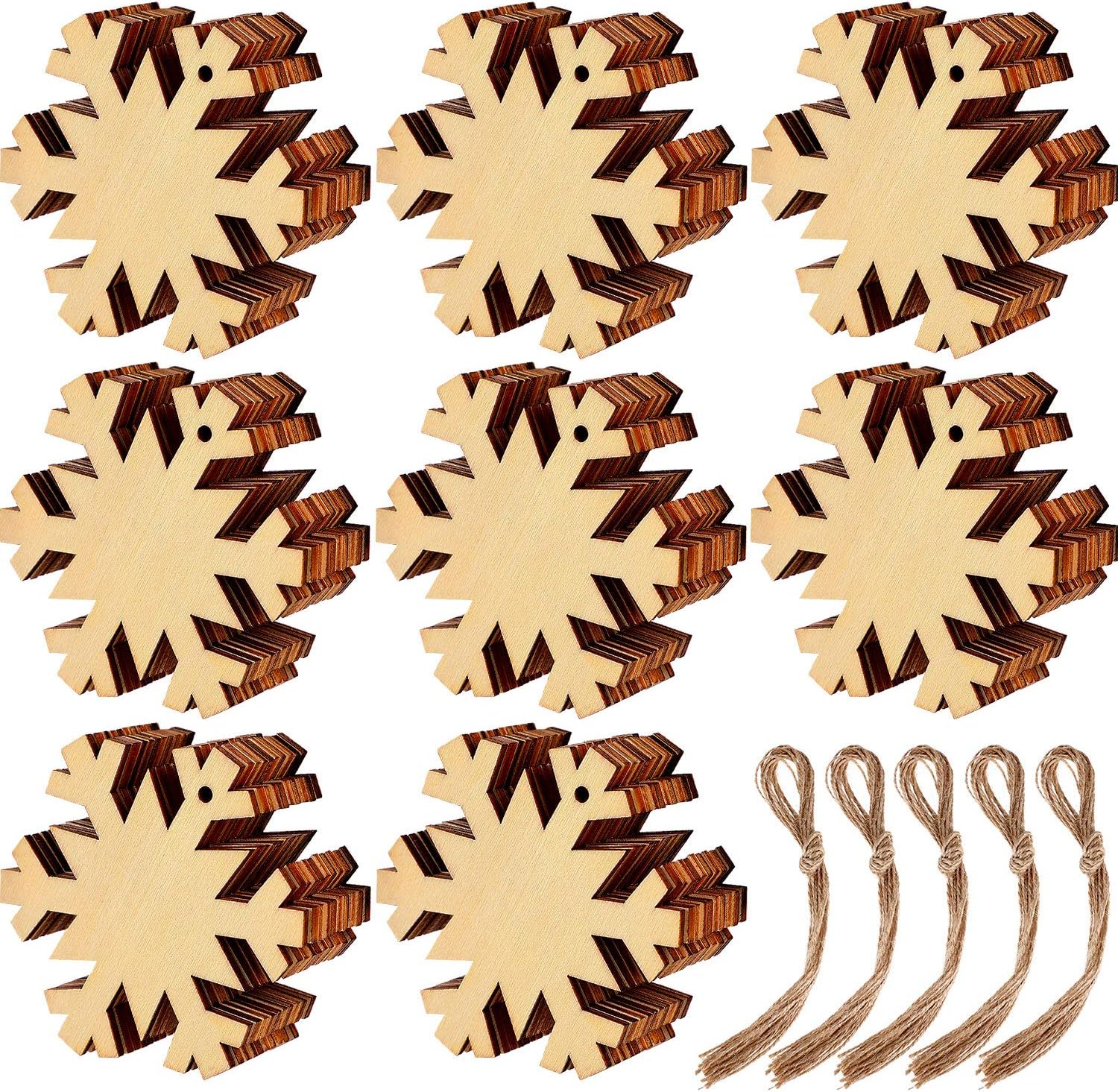 Blulu 60 Pieces Christmas Wooden Ornaments Round Wood Slices Snowflake Angel Shape with Cords for DIY Crafts New Year Christmas Tree Pendant Ornaments