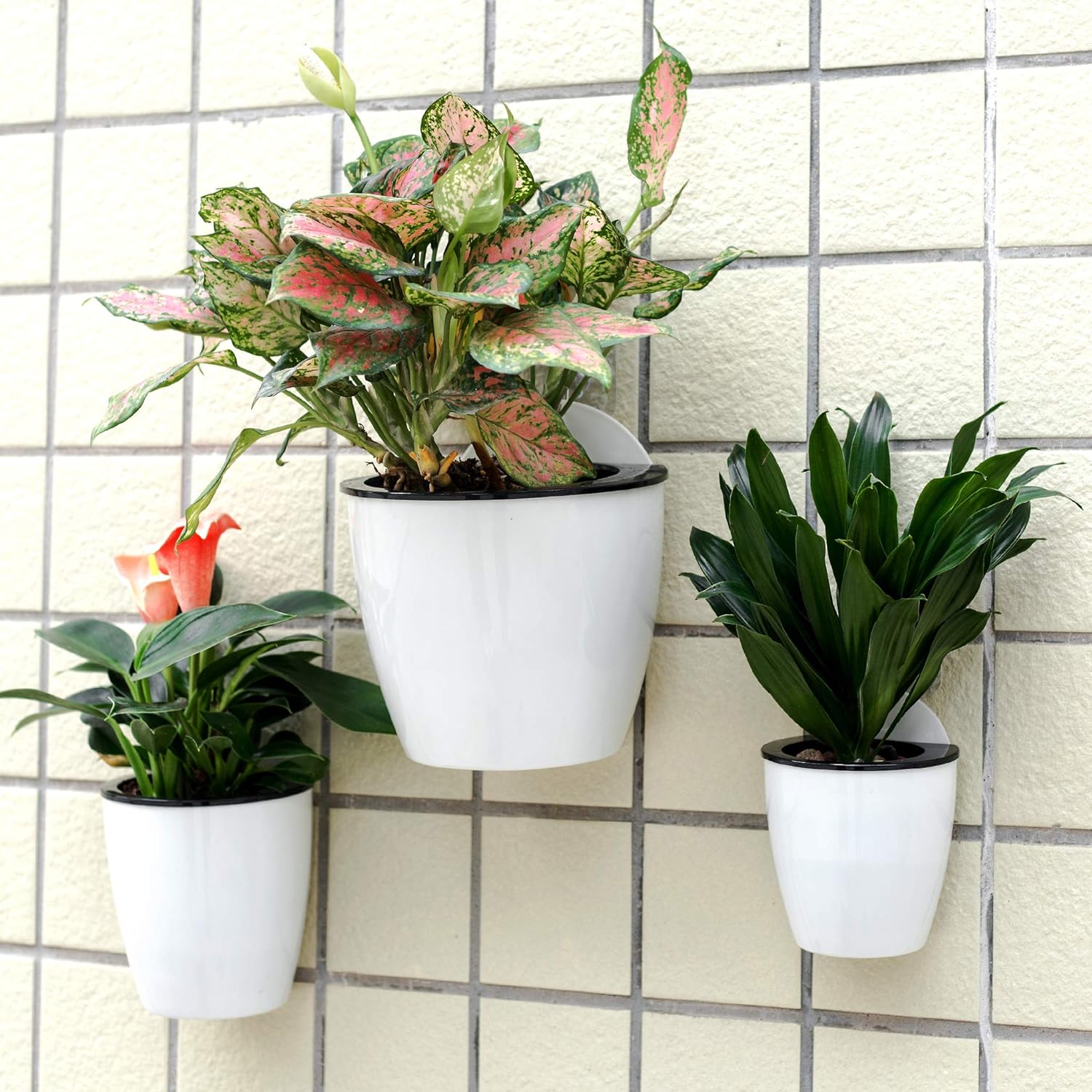 - Wall Dรฉcor: Wall decor planter pots holder with polishing processing modern design, sleek clear white, fancy slick surface, attractive looking, simple and artistic, will nicely compliment your home, office, kitchen, garden, lawn and patio. Vertical living wall planter, wall mounted indoor outdoor hanging flower pots, small lazy self watering flowerpot, wall hang / window boxes.