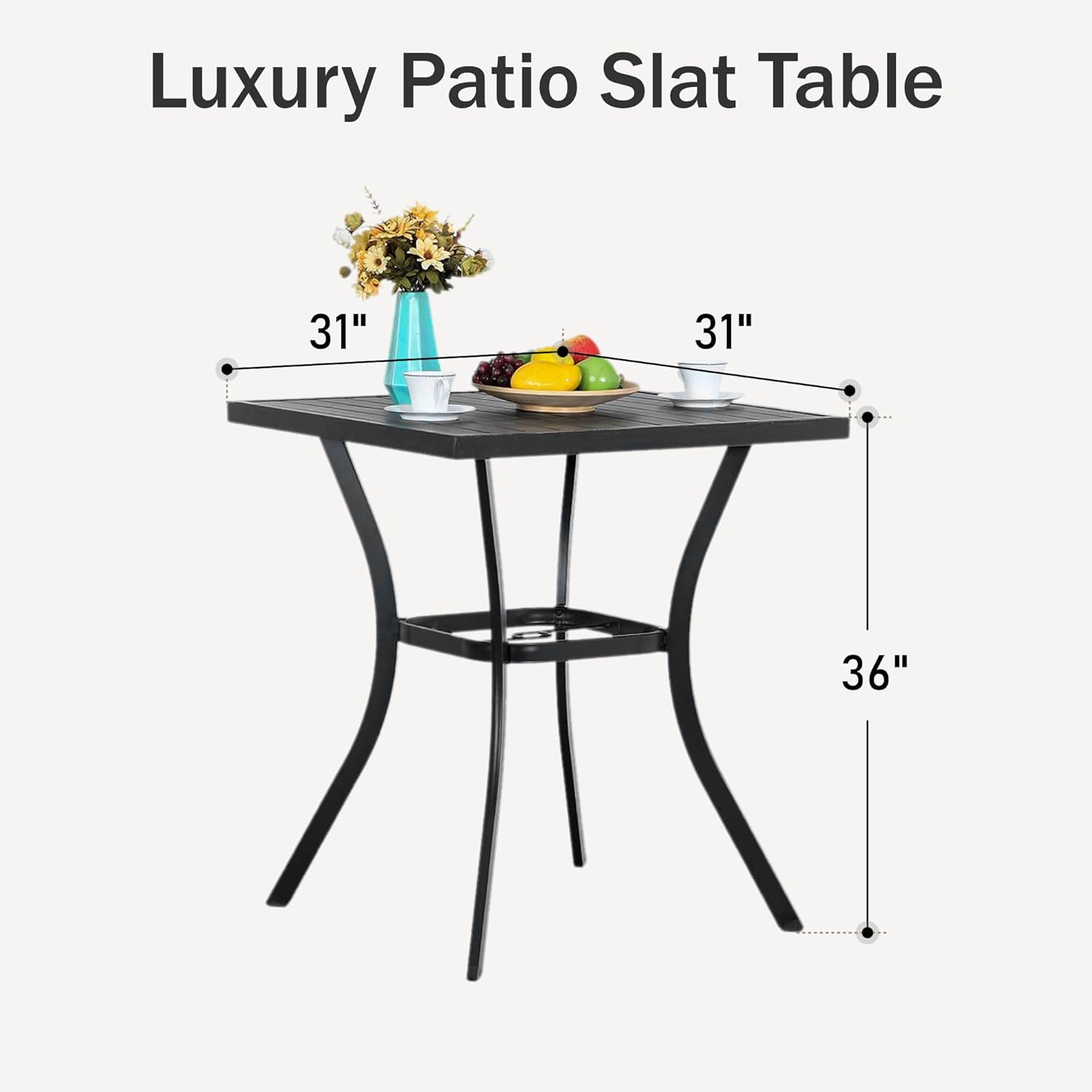 PHI VILLA Outdoor Patio 31" Square Height Bar Table with Umbrella Hole, 36" Height Coating Old Craft for Garden