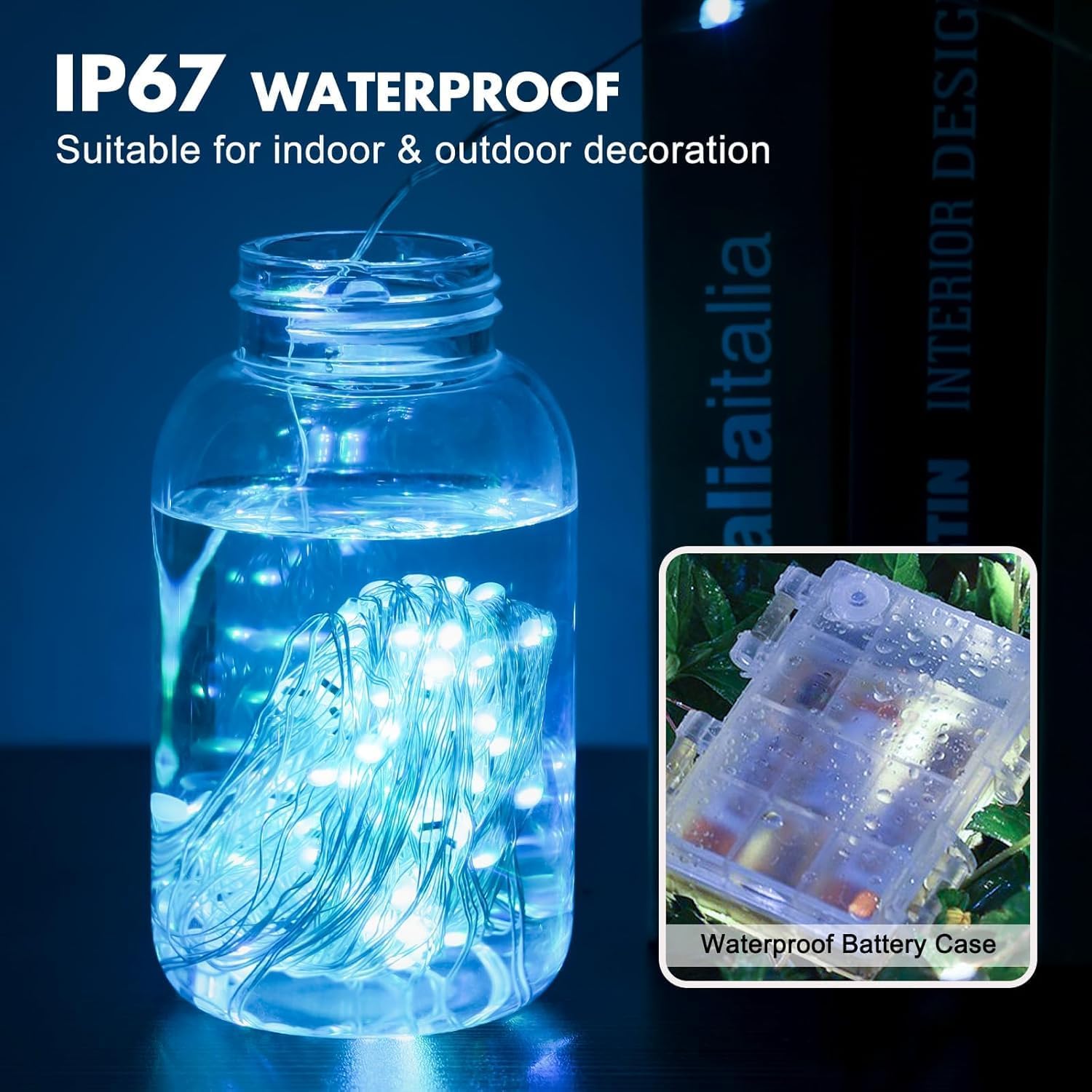 - 【Portable & Waterproof Fairy String Lights】The wire part of the led battery powered string lights are IP67 level, and it comes with IP44 waterproof battery case, it can be used indoor and outdoor without any worry of rainy damage or short circuitare. You can easily carry and place the battery led string lights anywhere you like