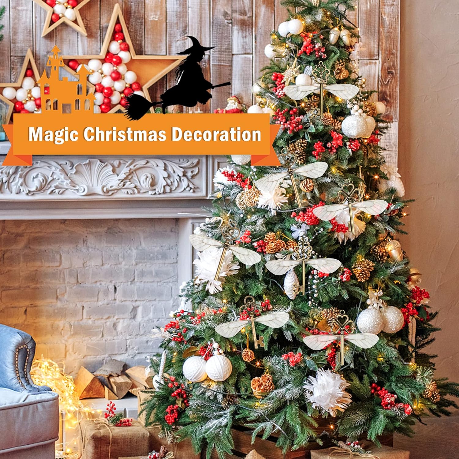 - Package: Magic themed flying keys DIY set includes 30 pieces vintage skeleton keys, 30 pairs white dragonfly wings,50 pieces clear double sided sticky dots and elastic crystal string(length about 30yd), enough quantity to use.