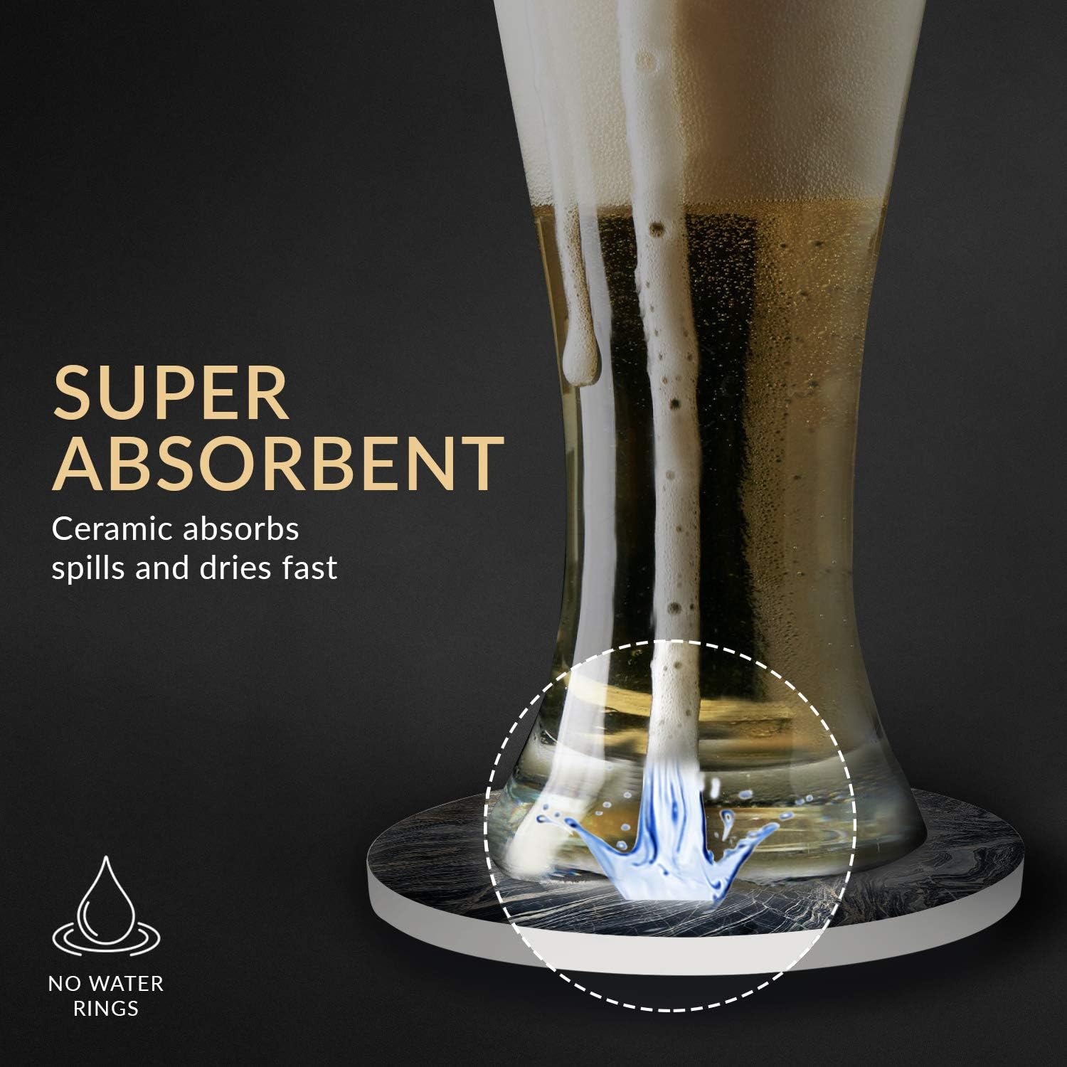 Emerson Coasters for Drinks Absorbent – Natural Stone Drink Coasters Set with Holder, Coasters for Coffee Table, Wooden Tabletop Protection Marble Style – 100% Heavy Duty Set of 6 (Lava)