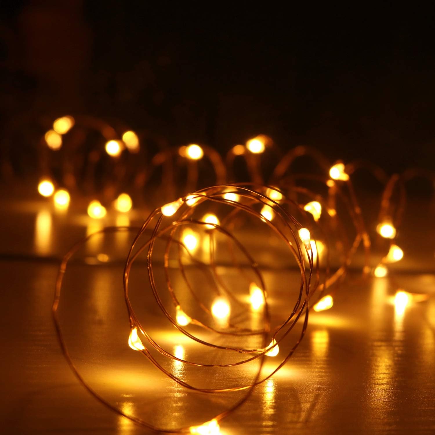 - Battery Operated Fairy Lights:6pcs lights per packing,battery compartment extension cord is 0.6ft,each light is with 6.25 feet flexible thin silvery copper wire with 20pcs bright micro leds,Amber Lighting, they glint in the dark, DIY decorate your patio, deck, front porch,bedroom,wedding, party, shop, restaurant ,room and Thanksgiving,Christmas Centerpiece Decor , And the silvery copper wire disappeared into the night, Leaving only light.