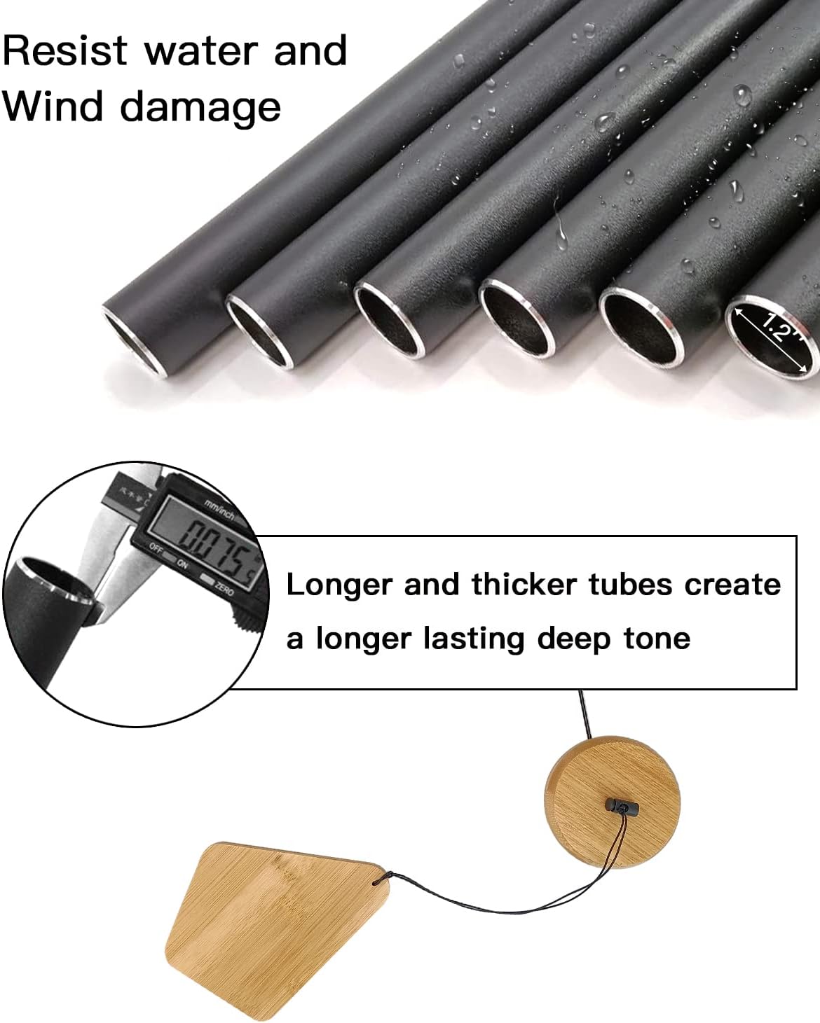 - Deep tone wind chimes- Each tube is precision tuned to pentatonic scale. Enjoy peaceful melodies that play as a whisper in the wind - deep tone, rich and full of beauty. They sound lovely so bring this wood wind chimes home today.