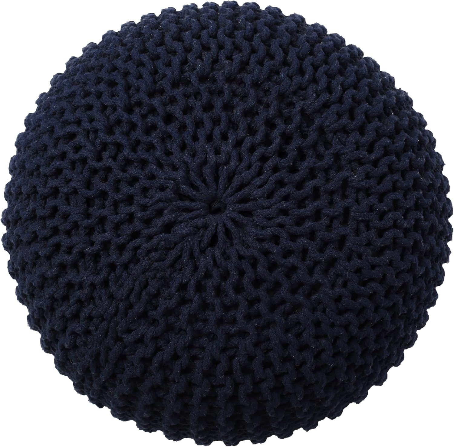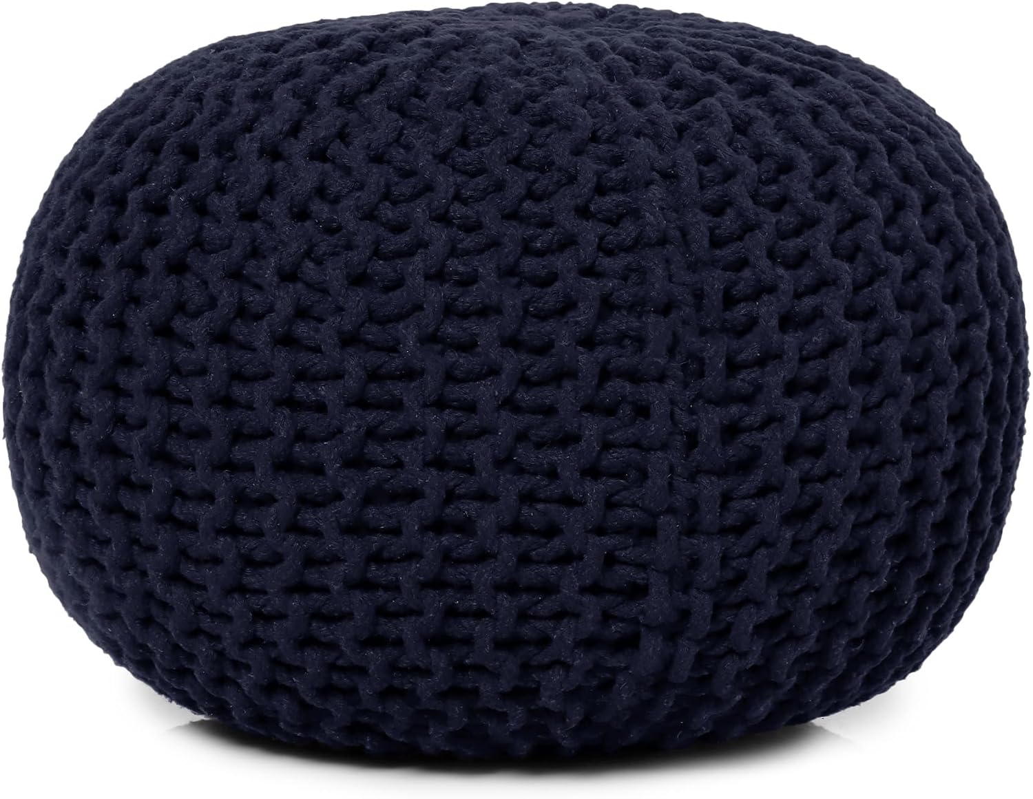 REDEARTH Round Pouf Foot Stool Bean Bag Ottoman - Cable Knitted Cord Boho Pouffe - Poof Accent Bean Bag - Handmade by Artisans for Living Room - Bedroom (19.5"x19.5"x14") - Navy Blue