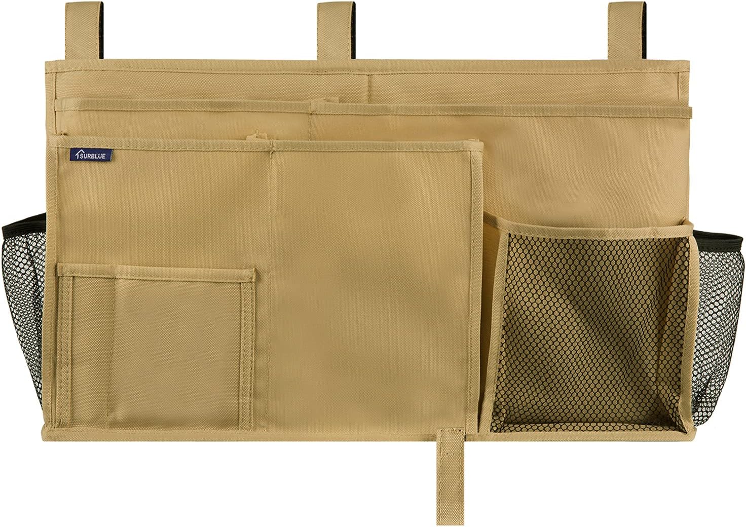 Surblue Bedside Caddy Hanging Bed Organizer Storage Bag Pocket for Bunk and Hospital Beds, College Dorm Rooms Baby Bed Rails,Camp 8 Pockets (Khaki)