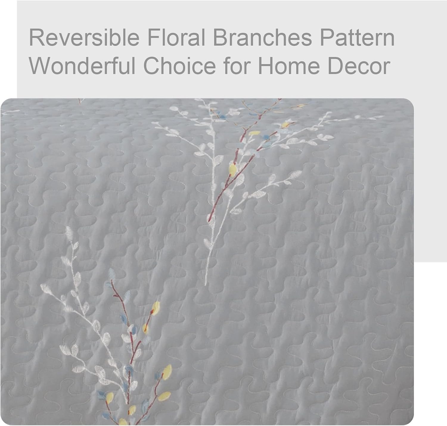 - Design: Floral branches patterns are printed with special printing and dyeing crafts which make color more vibrant and ensure a better color fastness. Sewed with exquisite neat stitching, the grey flowers bedspreads bring a stylish and elegant decoration to your bedroom