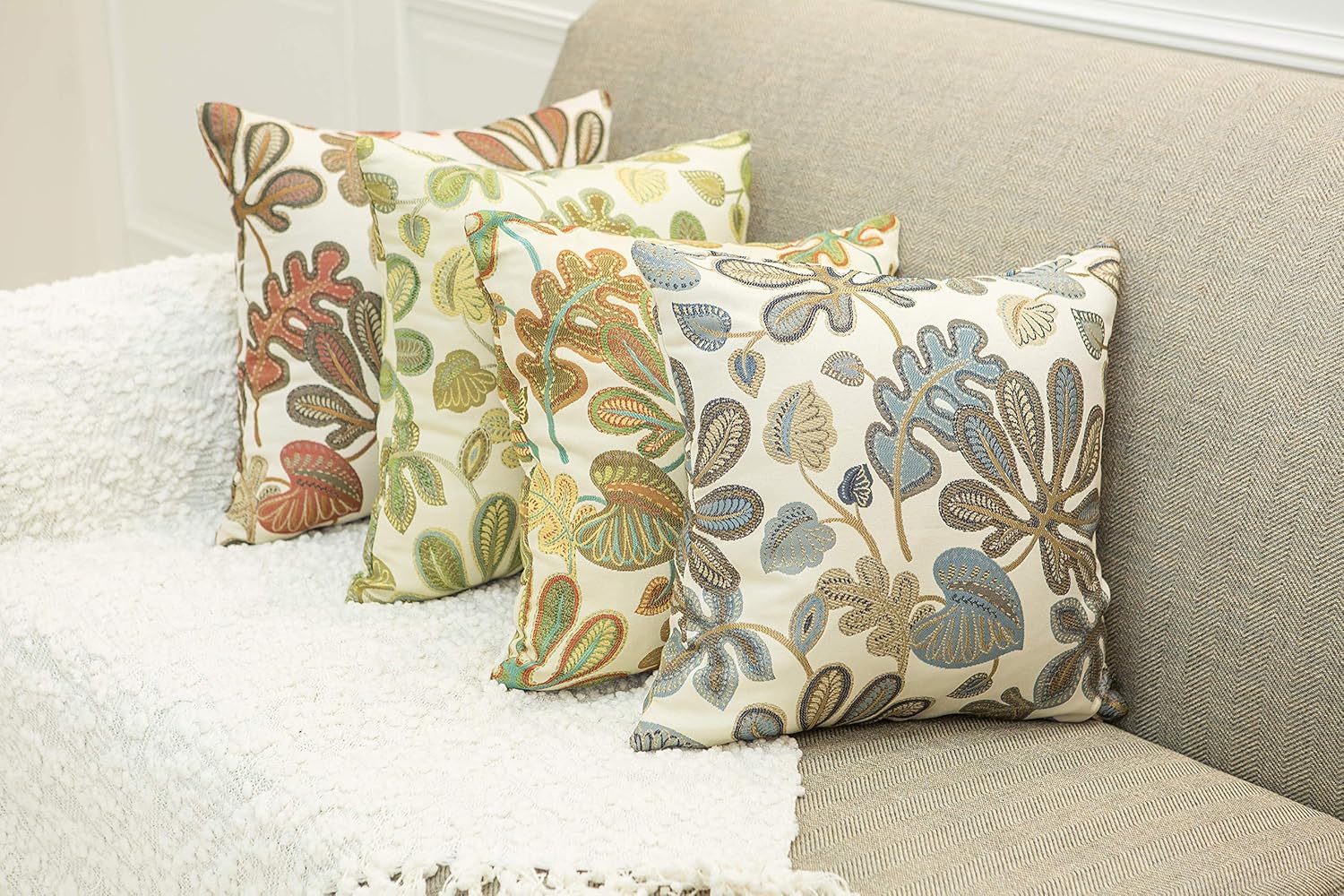 Set of 2 Jacquard Tropical Leaf Pattern Throw Pillow Covers Decorative Pillowcase 22X22 Inches,Green Cream