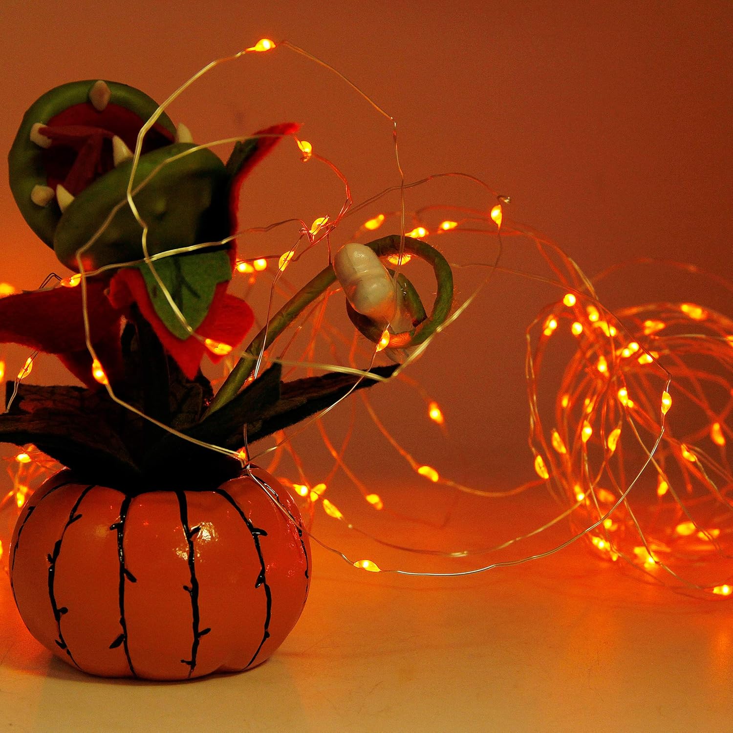 - Package includes 2 pack Halloween Decoration Orange silver wire string lights, 2 waterproof battery boxes and 2 remote controls. Each 33ft 100 led string lights glow a Orange light, which make every night starry nights, adding some whimsical ambiance. High quality bendable copper wire, you can build the shapes you want easily
