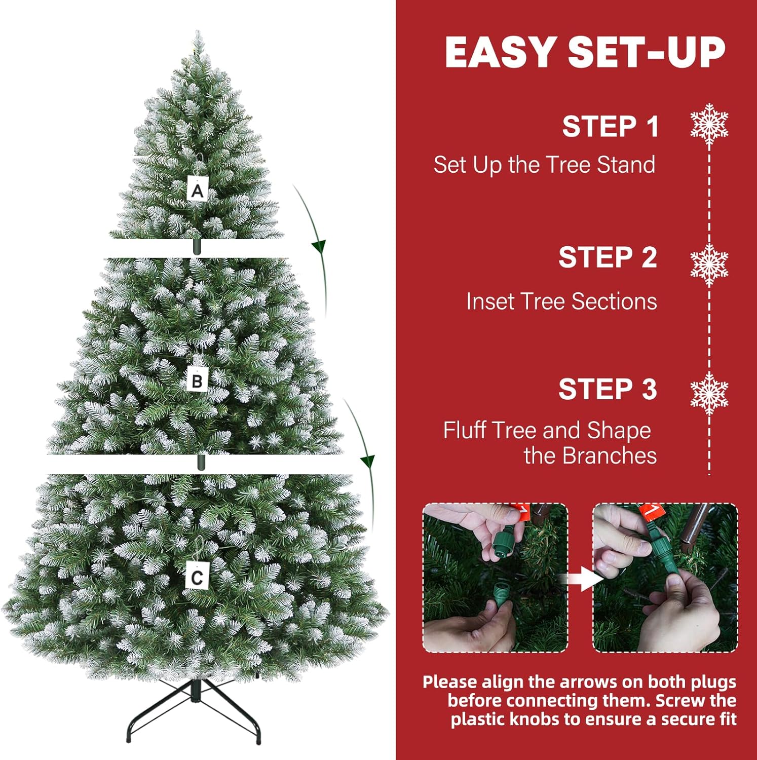 - EASY TO SET UP AND STORE: Hykolity lighted Christmas tree features convenient hinged branches, which allows for ease of assembly and disassembly. All the limbs are hinged around the center pole, the branches easily fall into place during set-up and fold back up for storage.