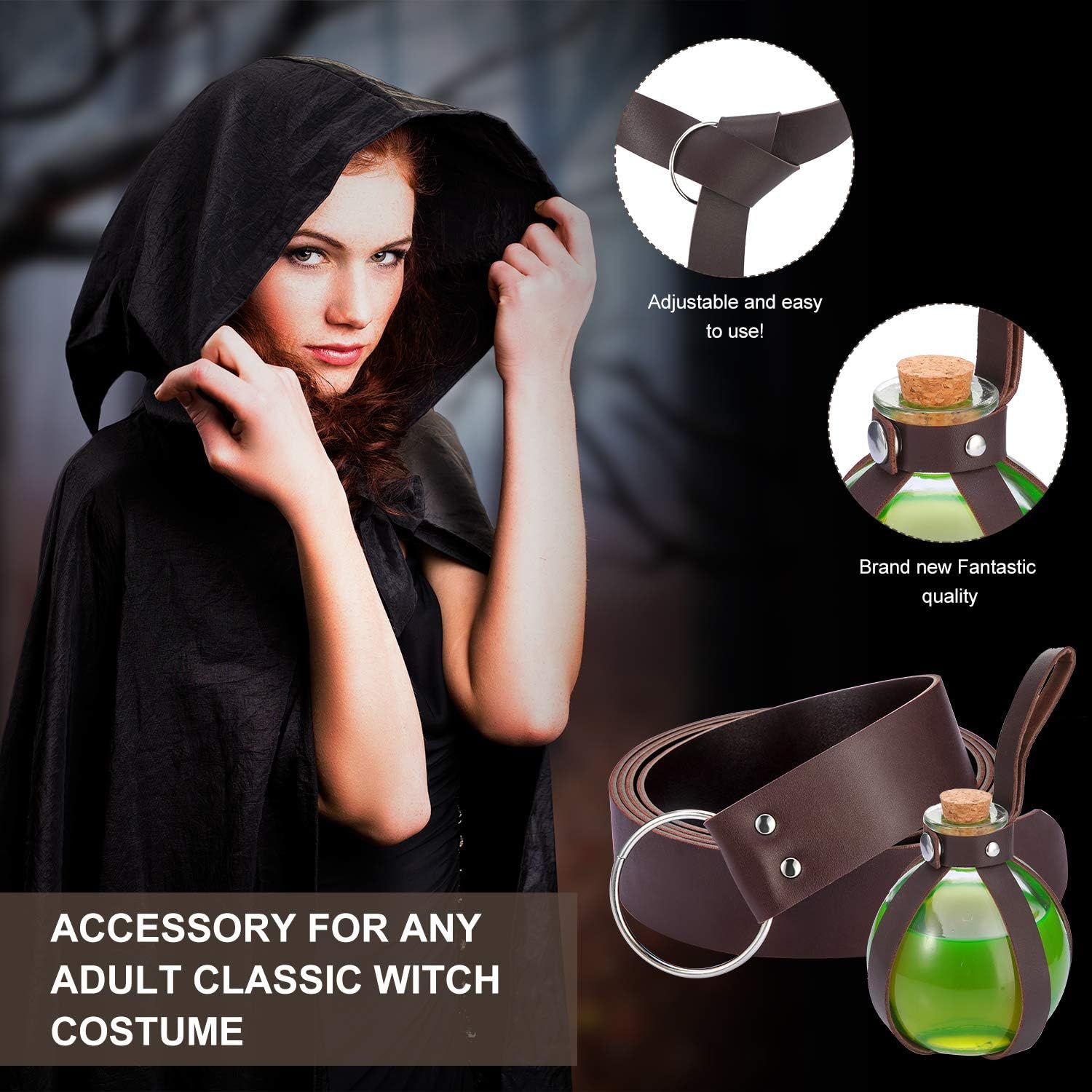 - What you get: package includes 1 piece 200 ml clear glass cork-top spherical ball bottle, equipped with a medieval leather belt, a wonderful combination that will help you add the finishing touch for any witch or wizard costume