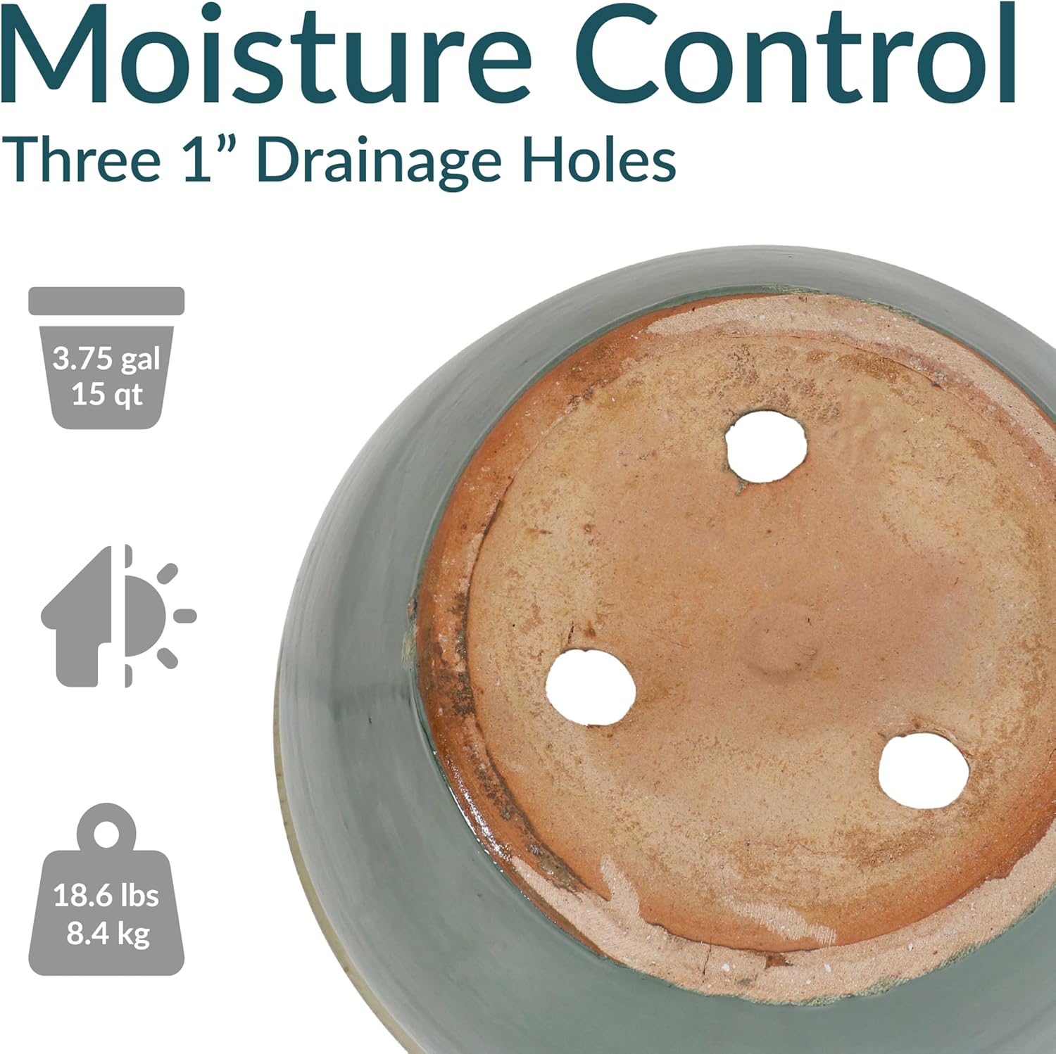 - LARGE SIZE FOR GROWING PLANTS: This large plant pot features a spacious top diameter and 3.75-gallon soil capacity that provides ample space for plants to grow. The planter has a 14.5β outer top diameter (12.75β inner diameter), a 9β outer base diameter (7β inner base diameter), an 11.25β outer H (11β inner H), and weighs 18.6 lbs.