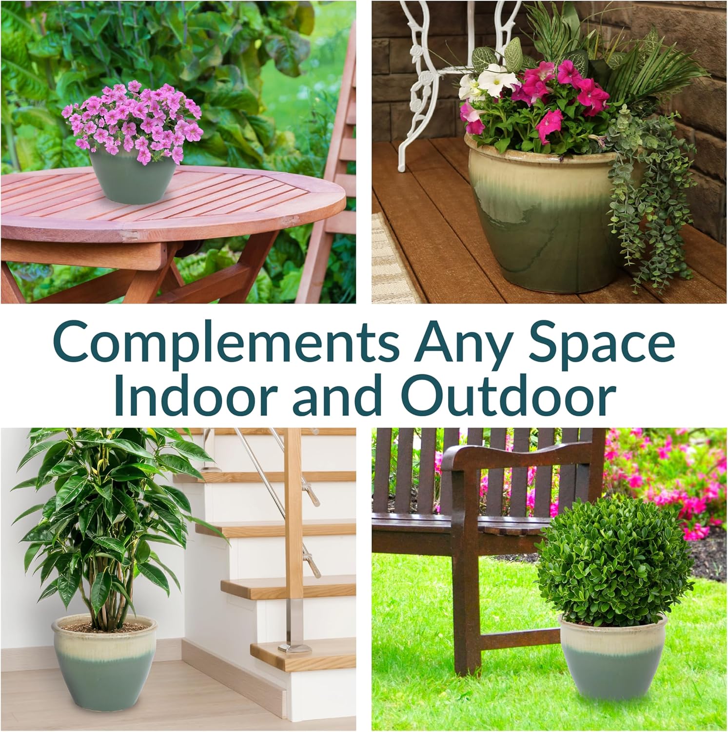 - VERSATILE PLACEMENT: Use this round garden planter on the patio, deck, or porch to add flowers to outdoor spaces, or set the planter in the sunroom, living room, or dining room to bring life to indoor spaces. If using it indoors, place a saucer (not included) beneath the flowerpot to prevent water and soil from leaking on the floor. The drainage in the bottom of the pot provides optimal air circulation and prevent water from pooling.