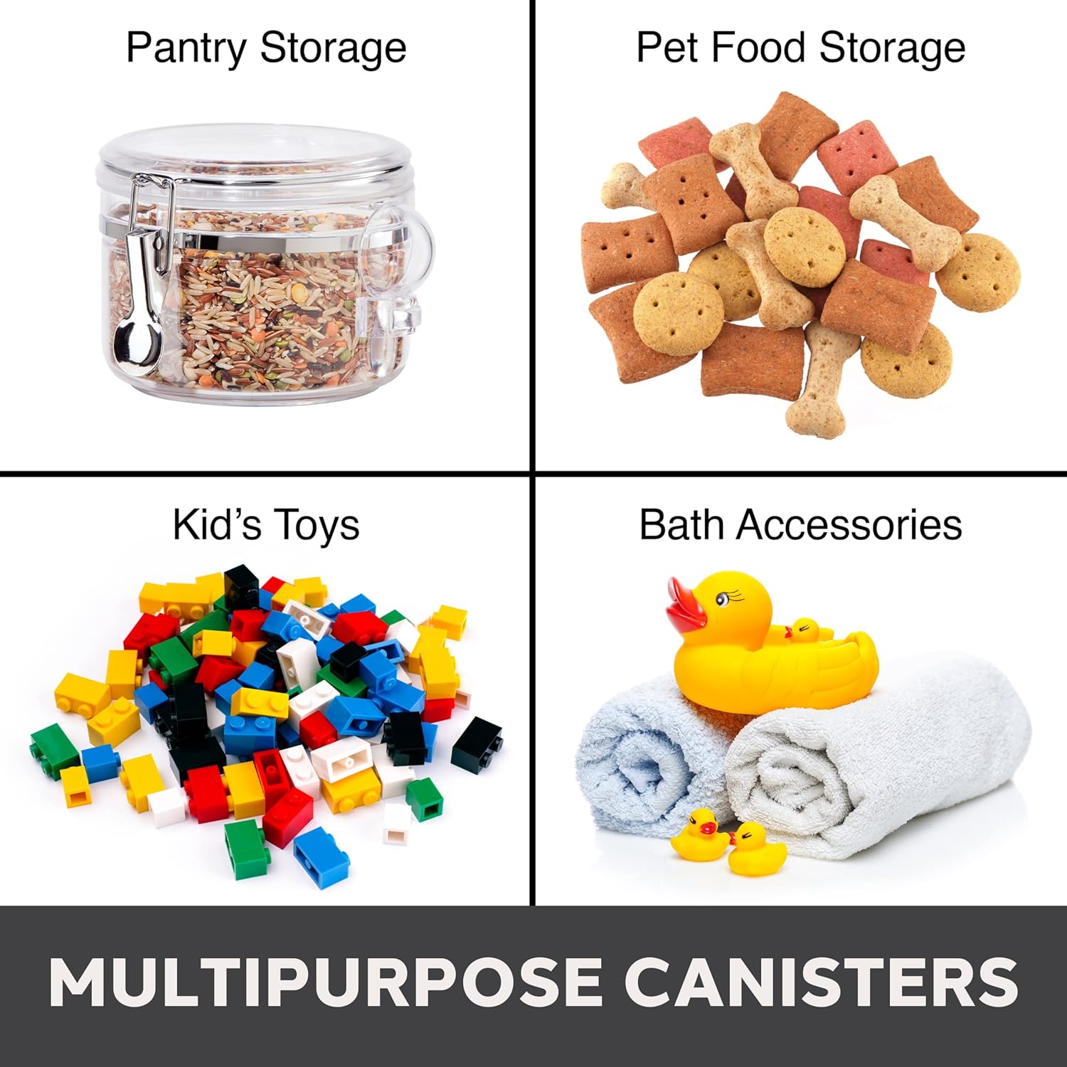 - VERY VERSATILE 61 fl oz CONTAINER: Great for storing cookies, sugar, flour, cereal, pasta, coffee, tea, spices, candy, rice and any other dry kitchen staples. Use the included scoop to help access contents.