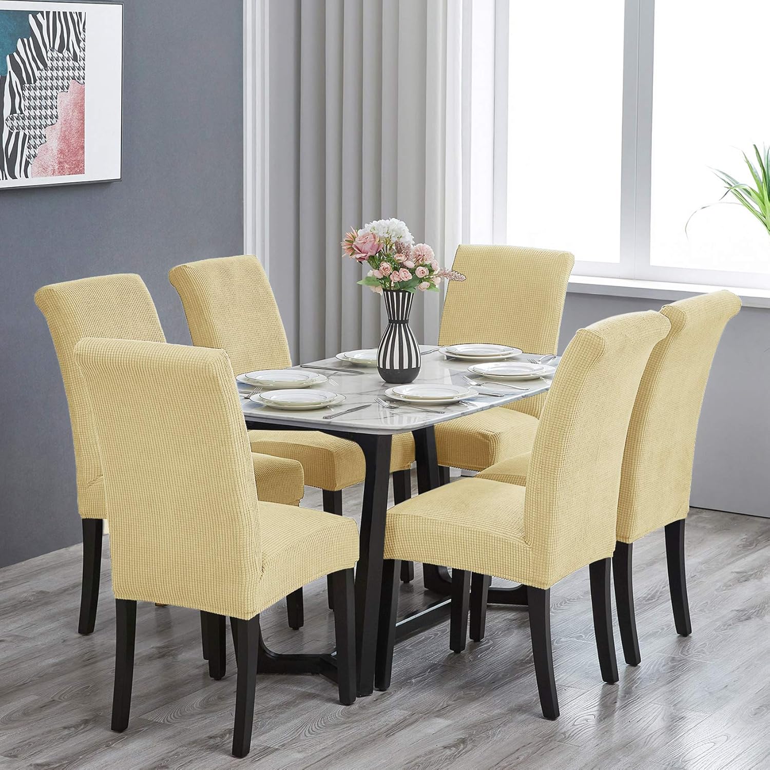 Howhic Stretch Chair Covers for Dining Room Set of 4, Removable Washable Dining Room Chair Covers, Dining Chair Slipcovers Seat Protector, Great Decoration for Home and Banquet (Champagne, 4 Pack)