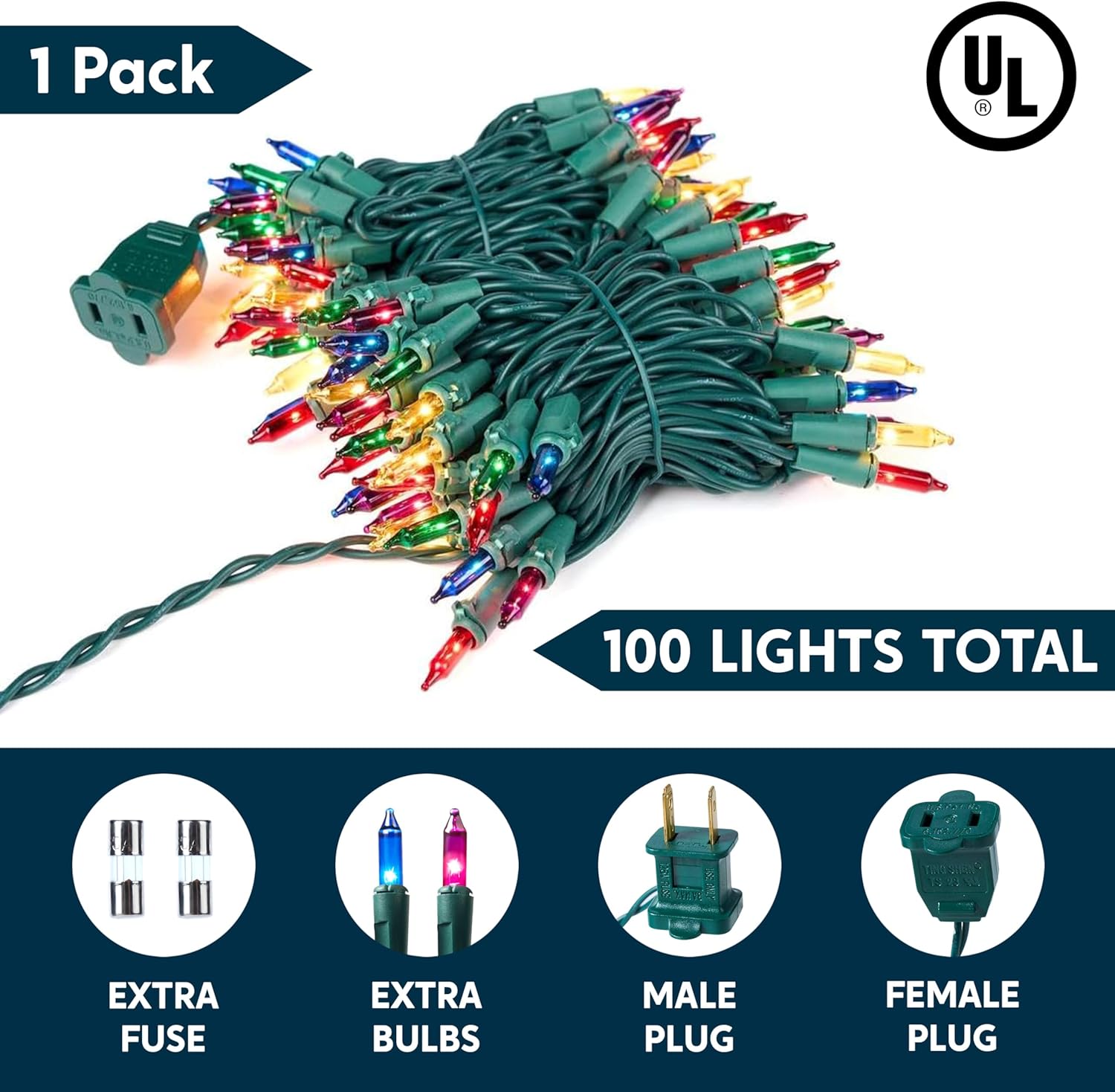 - 100 Multicolor Bulbs with Flasher Effects.Create a vibrant, traditional holiday glow with 100 warm multicolor bulbs. This set includes 2 flasher bulbs to add dynamic, eye-catching effects to your display. The classic look is ideal for Christmas tree decorations and nostalgic holiday cheer.