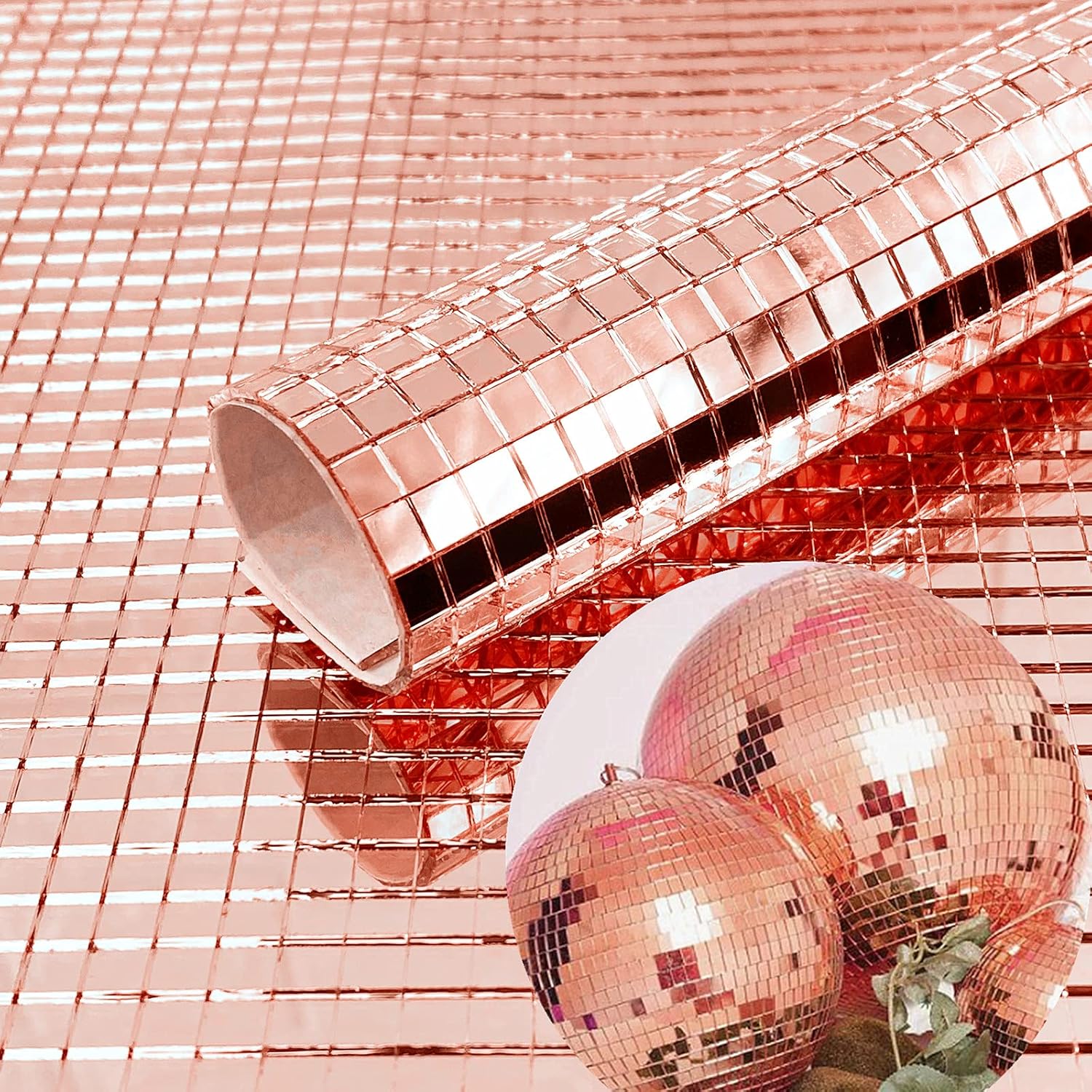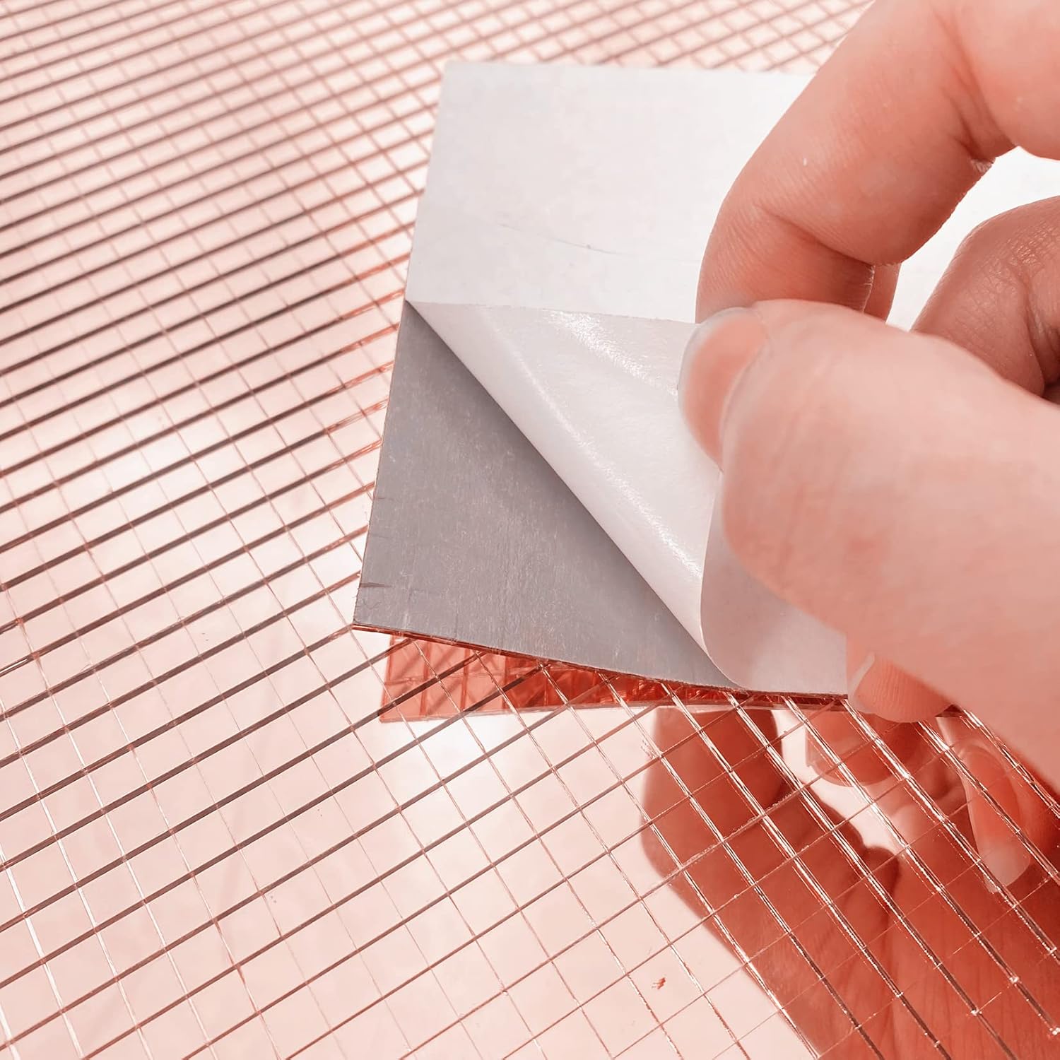 REDODEDO 2400pcs Real Glass Rose Gold Mirrors Mosaic Tiles Sticker for Craft Square Glass Tiles Self Adhesive,5mm by 5mm (Rose Gold)