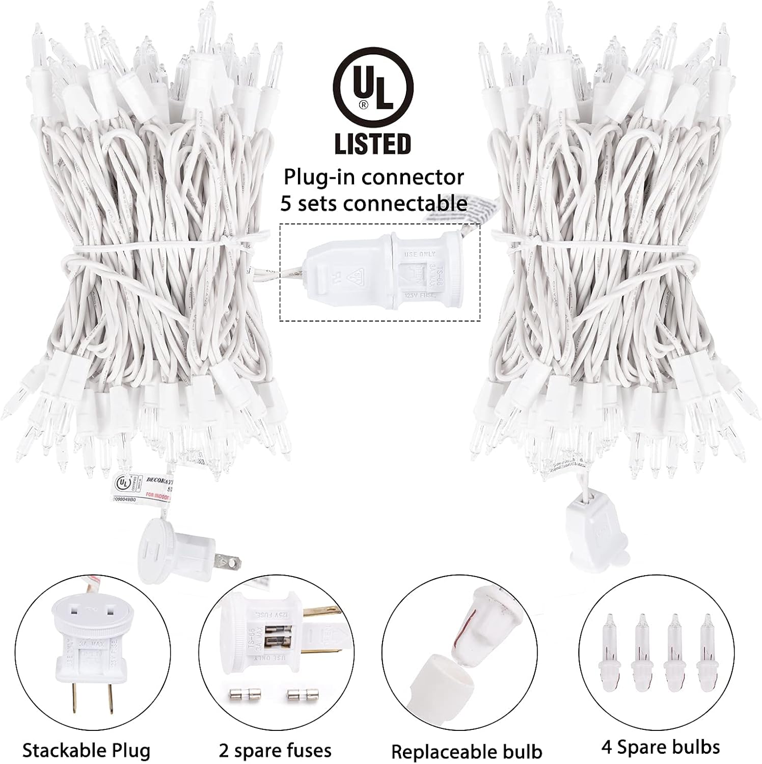 - Creative Mini Christmas Lights Set: This Christmas light on white wire set includes 200 transparent mini-lights, a total length of 51.7 feet of white wires, and each bulb is 2.5 inches apart. It can be connected end-to-end to meet your decoration needs, up to 5 creative light strings