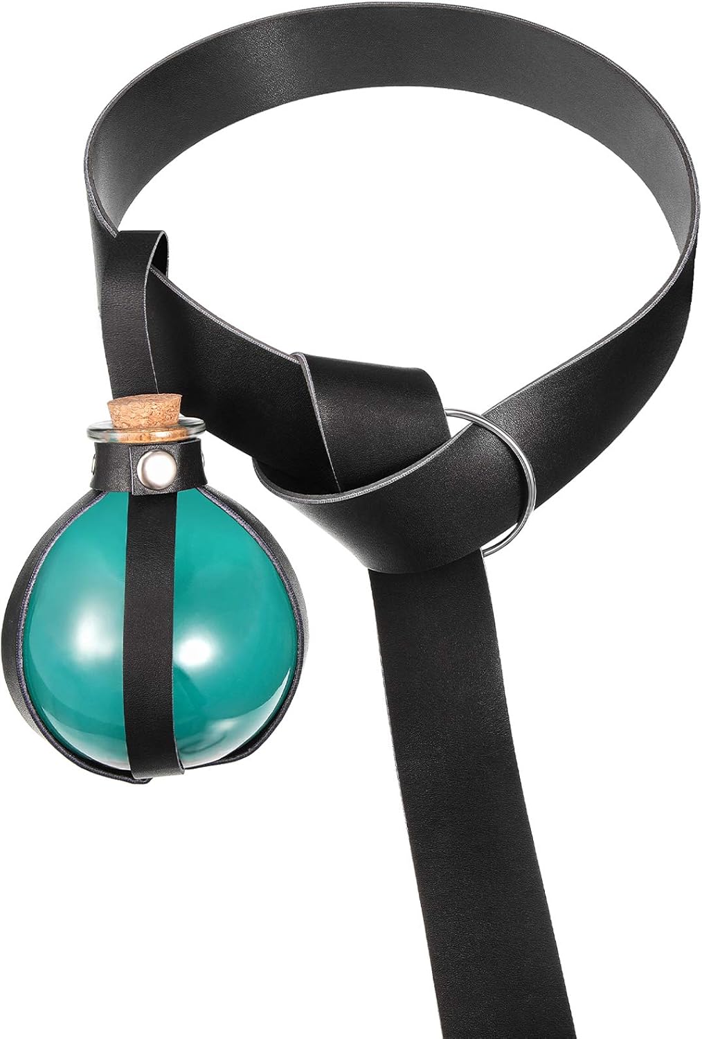 - Materials: the large round spherical bottle is made of thick glass, while the attached medieval style belt is handmade with artificial leather that has been tanned and treated, this set of carefully crafted glass bottle will add an adorable and retro touch to your costume and home decor