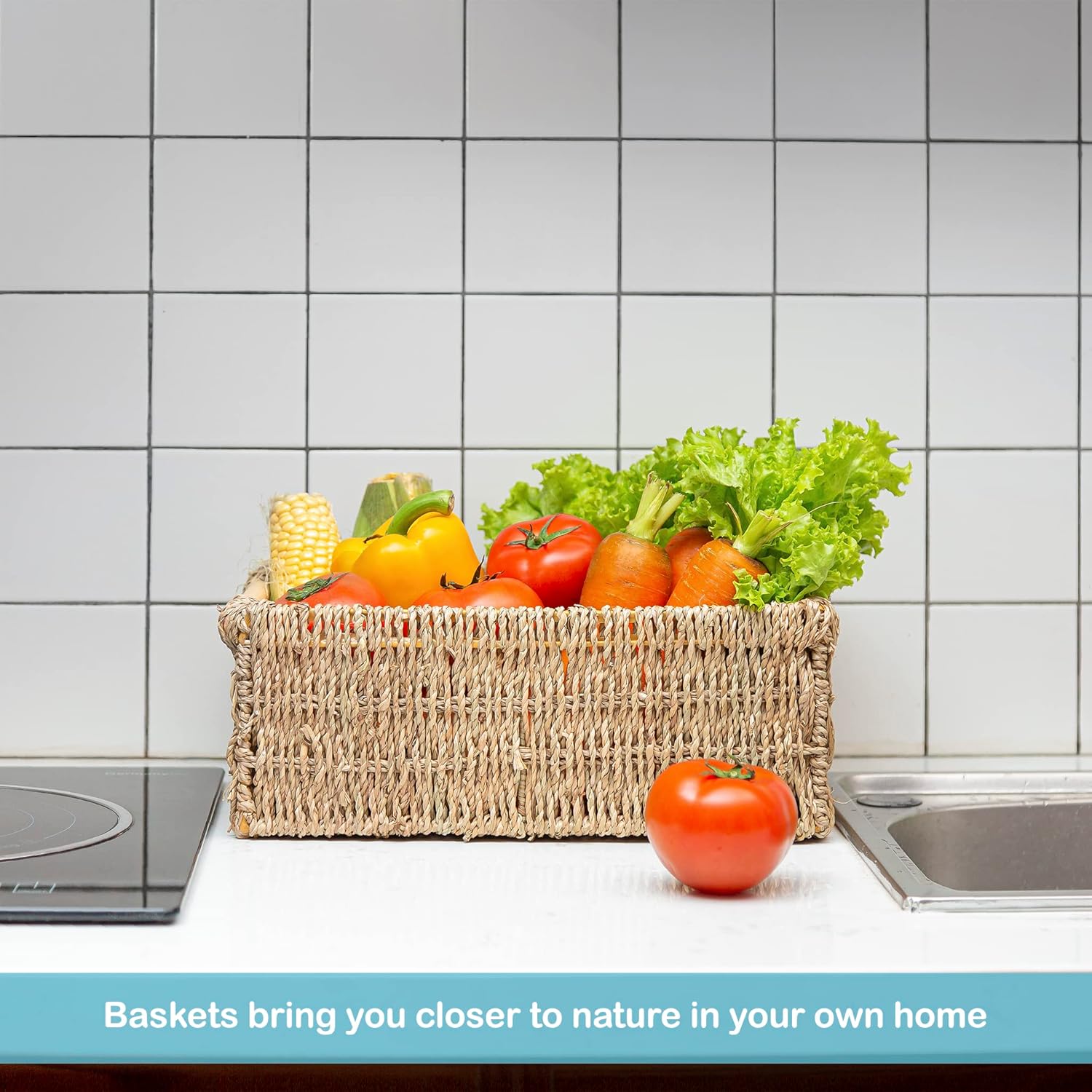- ā Convenient and Attractive - Whether it be by way of pure decor, storage, or organization for kitchen, pantry, or bathroom. This natural baskets with handles suit your home in every way. The rectangular baskets wicker is great for magazines, games, pet toys, media, household items.