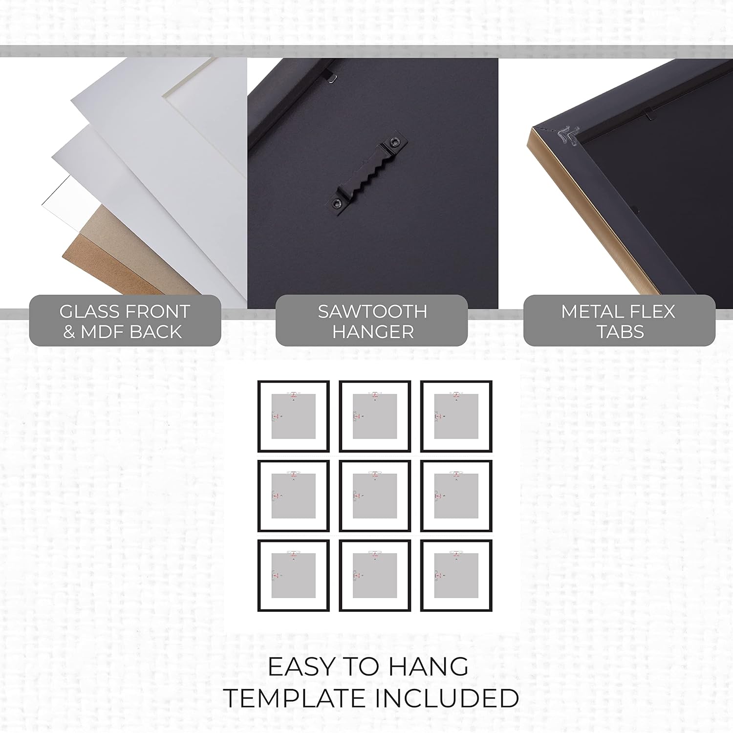 - Easy to Hang - The included easy-to-hang wall template with multiple layout options allows you to build the great gallery wall and frees you from the hassle of measuring and framing. Simply hang or tape template to wall, hang frame with the pre-attached hanging hardware, and then remove once the picture is hanging.