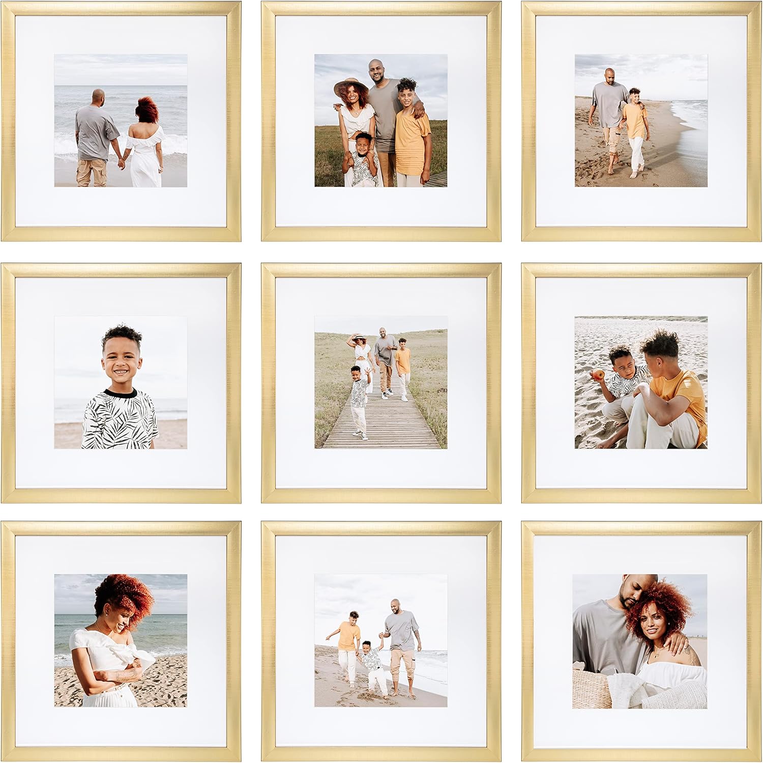 Sheffield Home 9 Piece Gallery Wall Frame Set, 12x12 in. Matted to 8x8 in. (Gold)