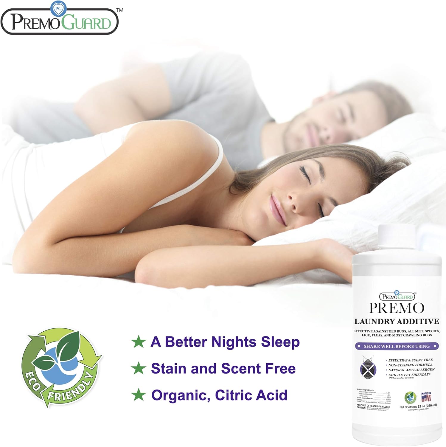 Premo Guard Bed Bug & Mite Laundry Detergent Additive 32 oz – Child & Pet Friendly – Stain & Odor Free – Best Natural Non-Toxin Treatment