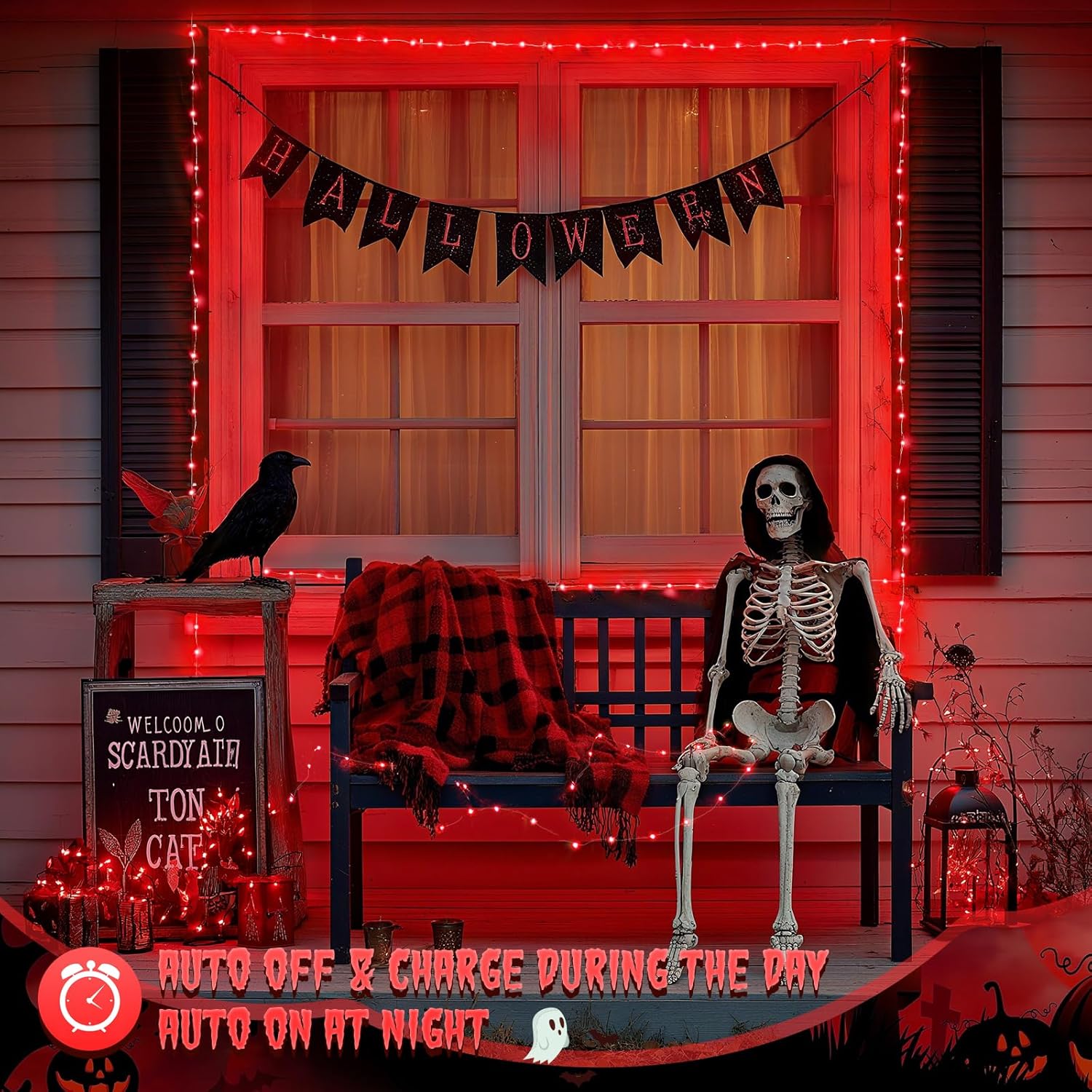 - 【2 PACK HALLOWEEN SOLAR LIGHTS】100 LED bulbs on 32.8 feet copper wire, with a steady 360-degree viewing angle, ideal for decorating your gardens, patio, yard, deck, stage, holiday, etc. What's more, in the dark, the wire fades invisible, leaving only the bright red fairy lights, creating a Joyful ambiance to Christmas decorations.