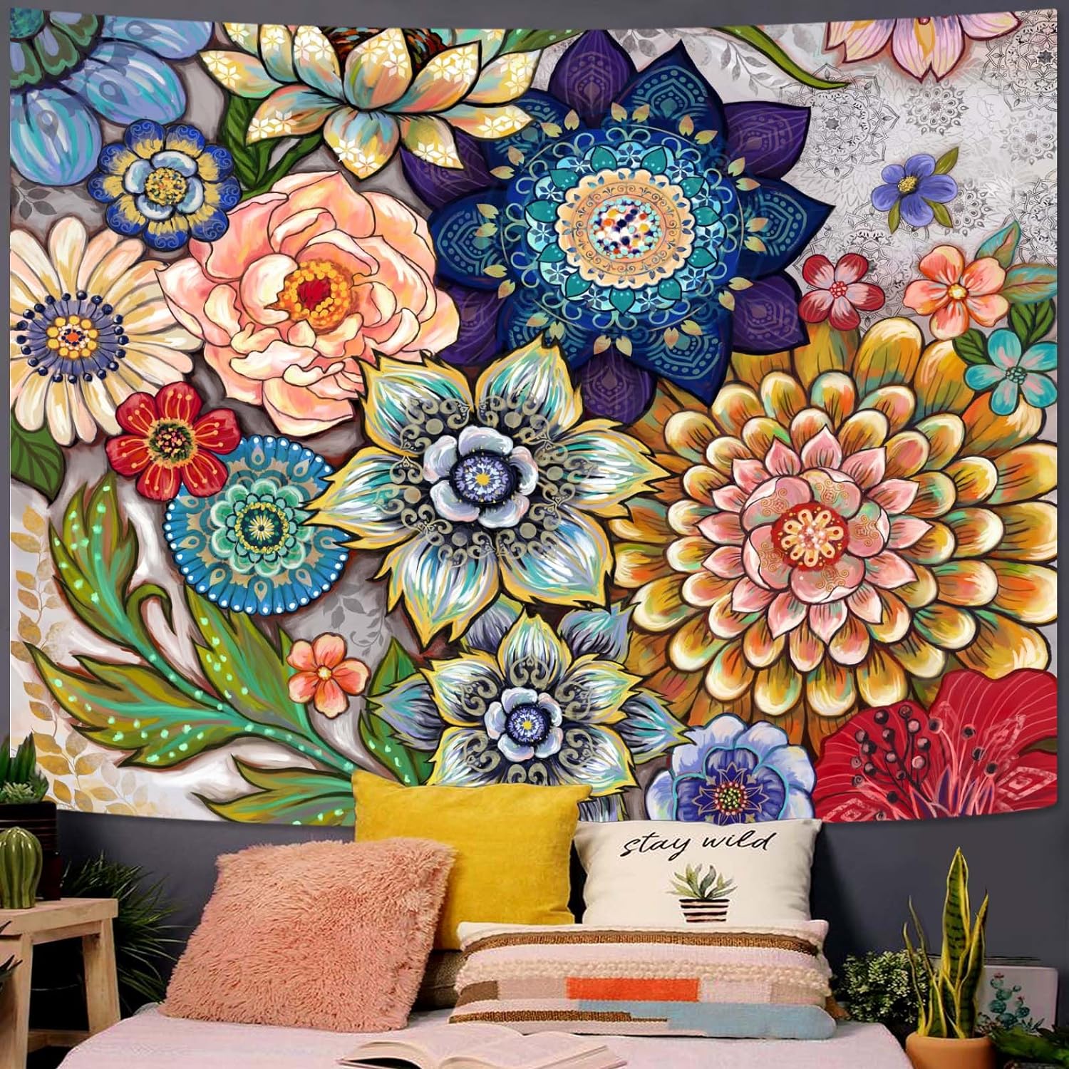 Neasow Colorful Floral Tapestry Wall hanging, Bright Boho Fabric Blossom Tapestries, Multi Color Tapestry for Bedroom Home Hippie Wall Decor 50×60 inch