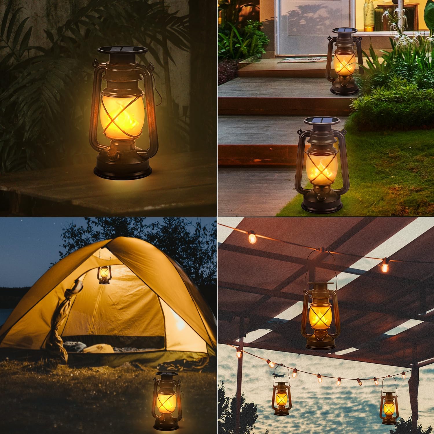- Vintage Design : The retro style makes it more unique with aesthetic sense. Led vintage lantern is made of high quality plastic material, never get rusty no ever rainy or snowy. Lighting soft and fills the area with quiet and elegant ambiance at night. Great for outdoor events like party, wedding, camping, Halloween, Christmas or even as gifts